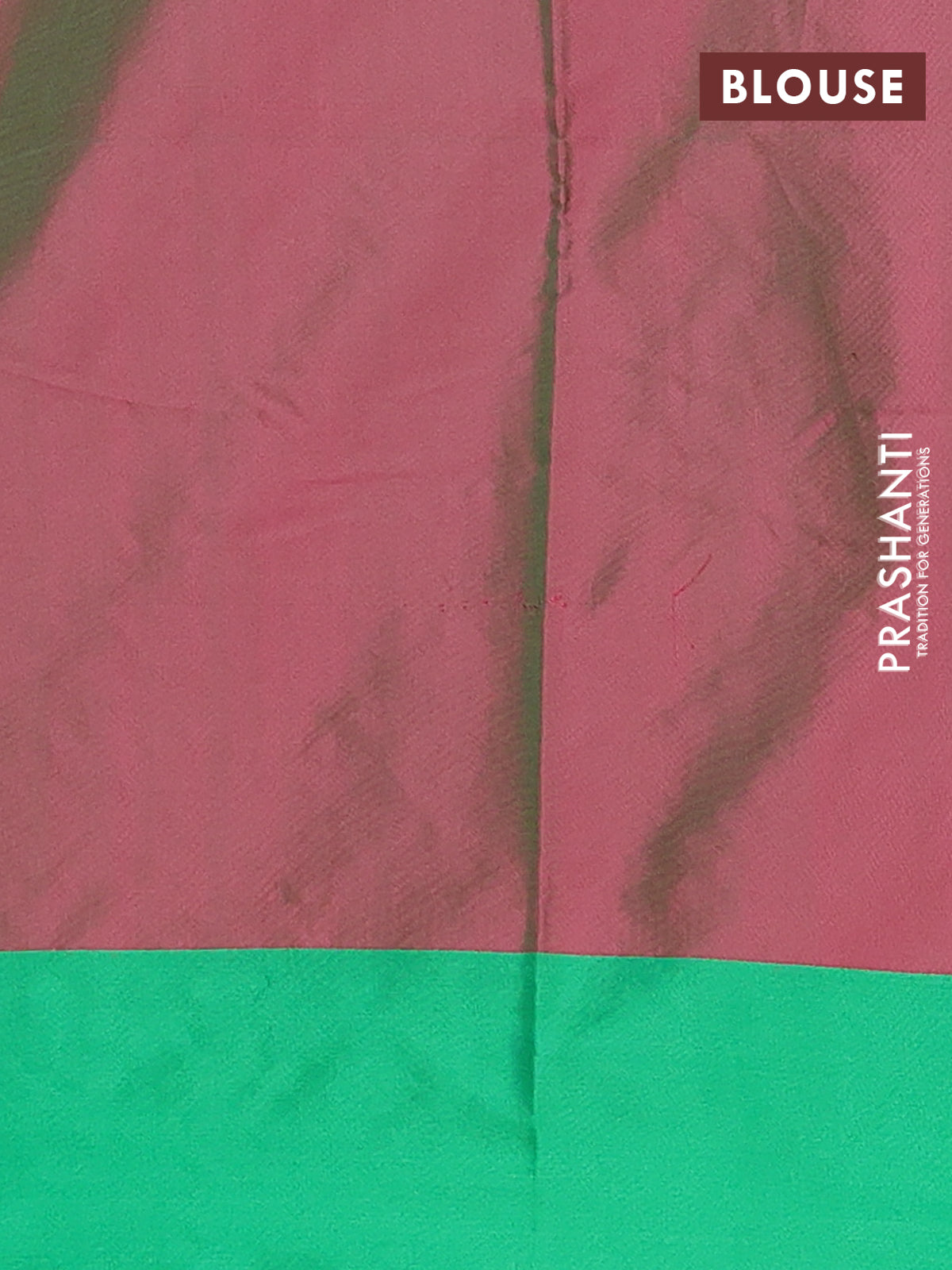 Arani semi silk saree dual shade of maroon and green with allover copper zari checked pattern and copper zari woven simple border