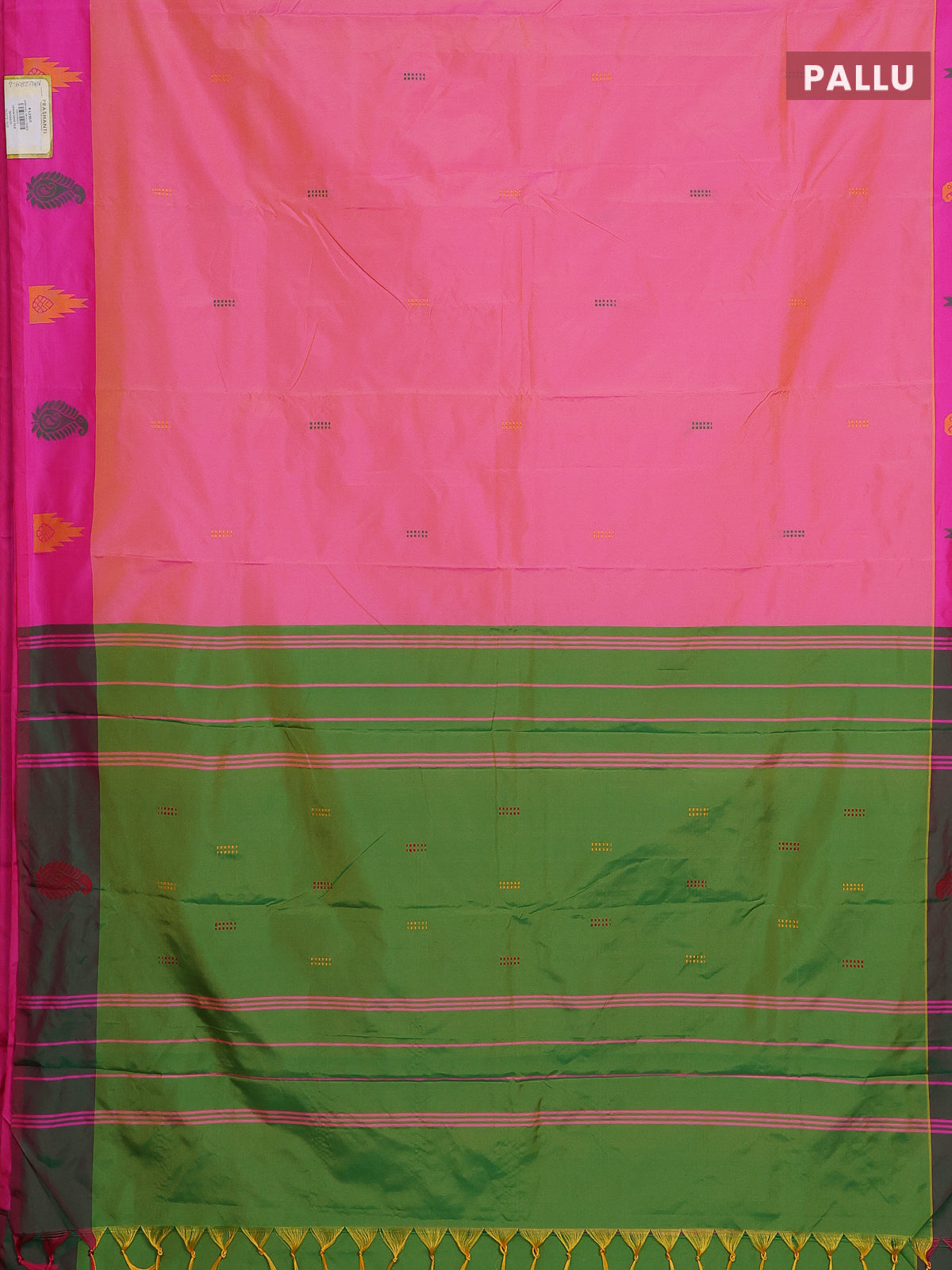 Arani semi silk saree dual shade of pink and green with thread woven buttas and thread woven butta border