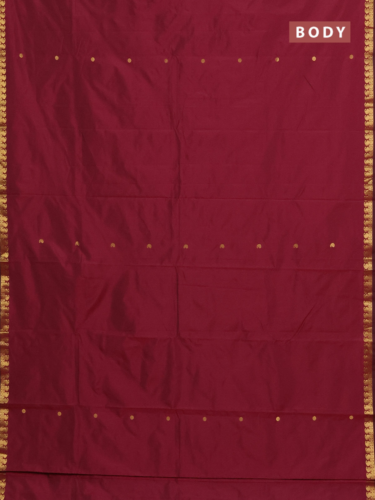Arani semi silk saree maroon shade with rudhraksha & paisley zari woven buttas and zari woven border