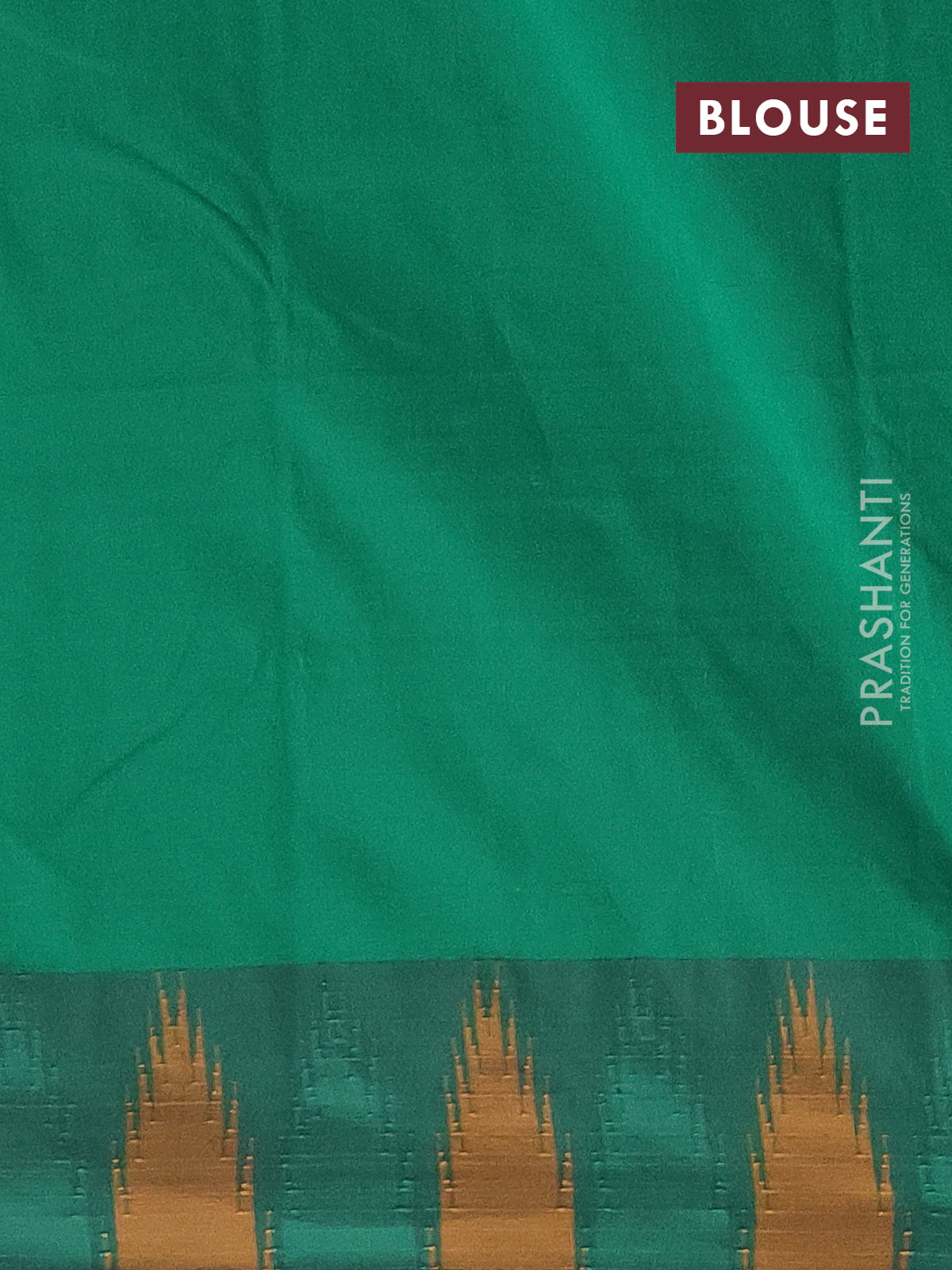 Arani semi silk saree navy blue and green mustard yellow with plain body and temple design border