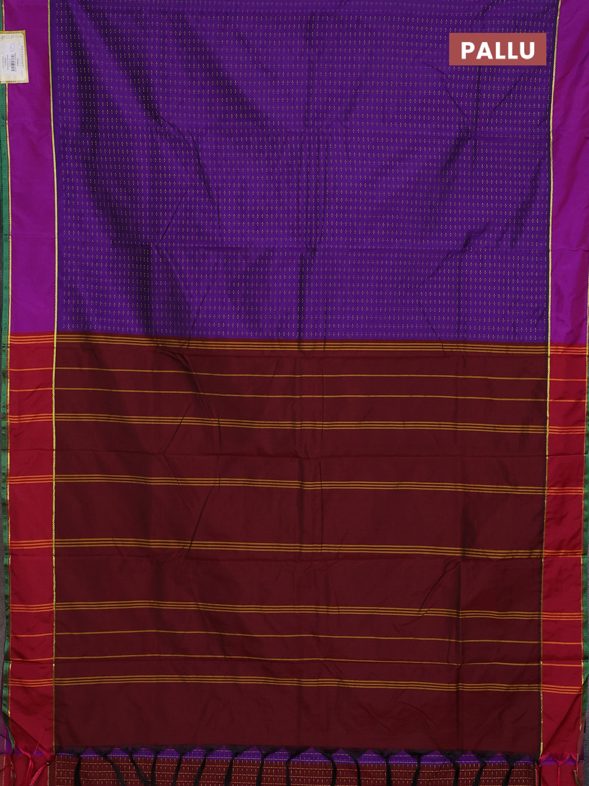 Arani semi silk saree violet and purple with allover thread weaves and rettapet zari woven border`