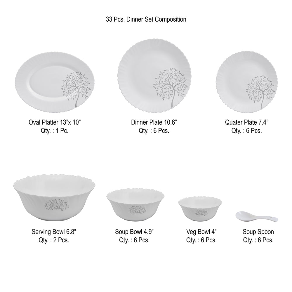 Arias Fluted Tree Of Life Dinner Set - 33 Pieces