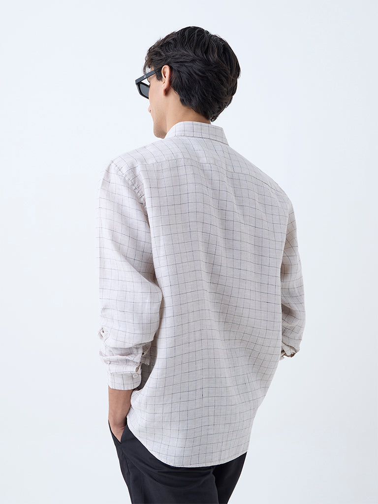 Ascot Beige Checks Design Relaxed-Fit Linen Shirt