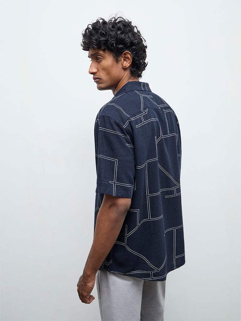 Ascot Navy Abstract Printed Relaxed-Fit Shirt