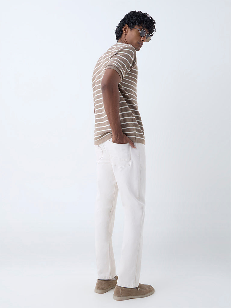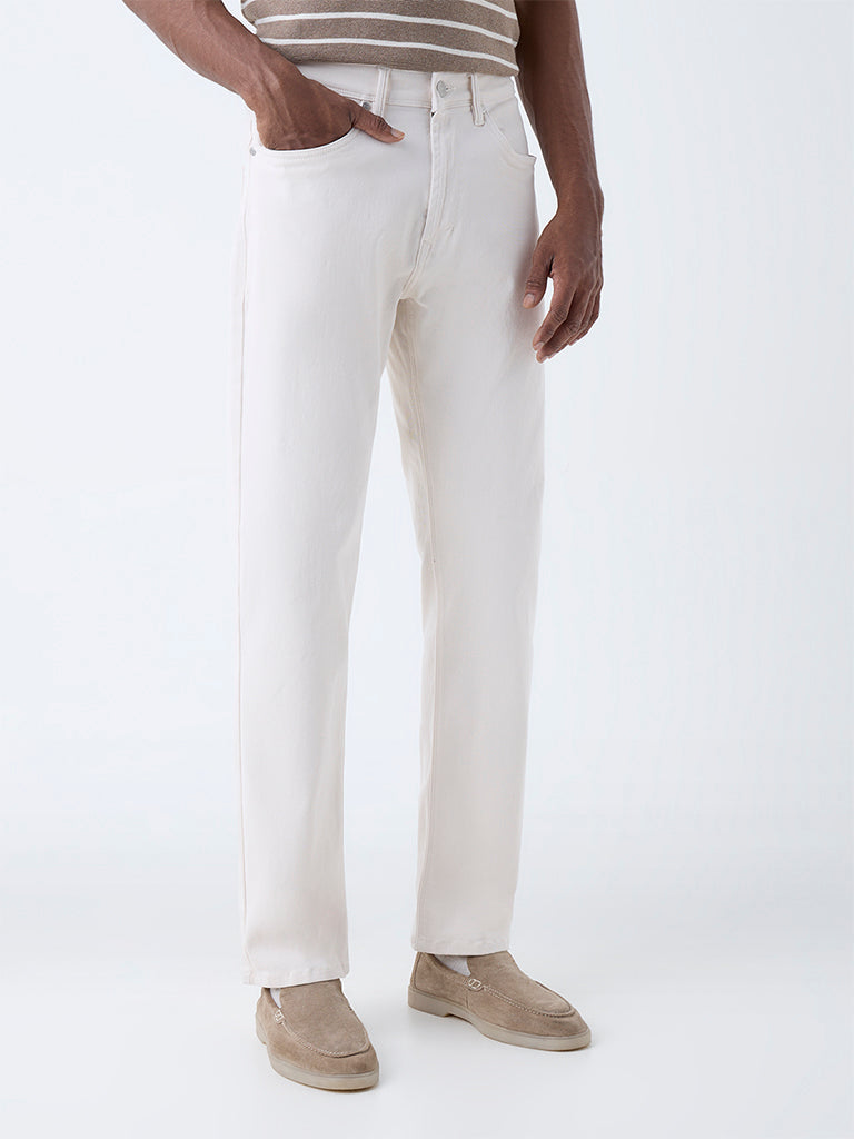 These off-white jeans from Ascot balance laid-back ease with clean structure. Cut in a relaxed fit and crafted from a soft cotton-blend, they feature a button closure, zip fly, and multiple pockets for everyday functionality.