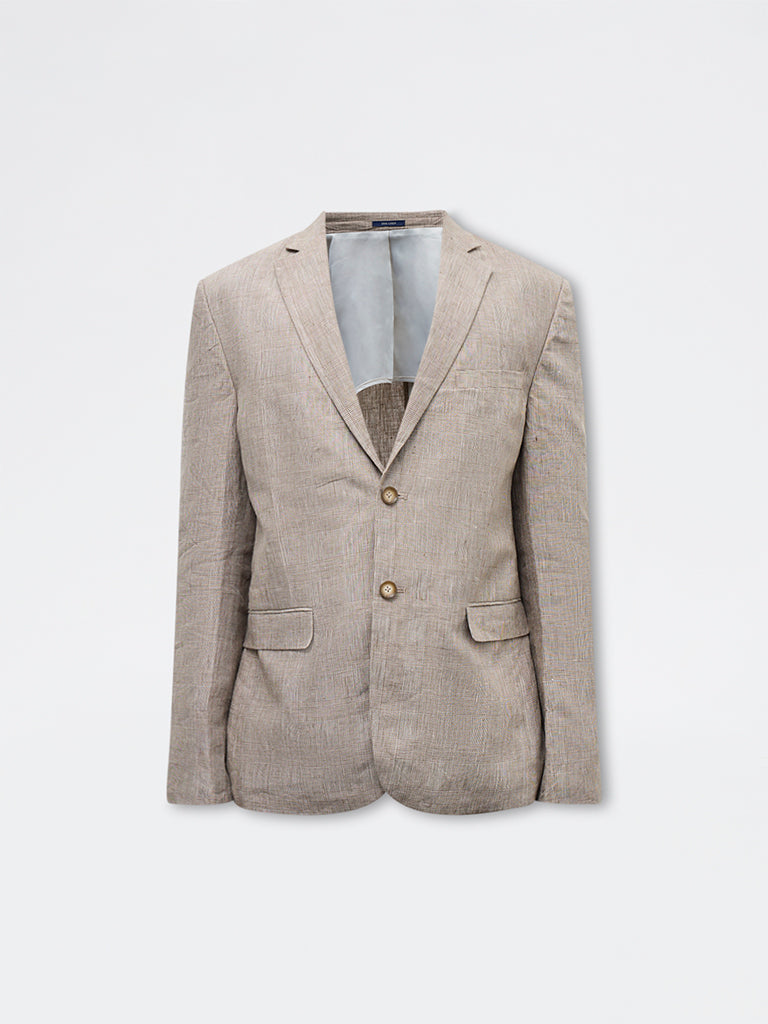 Ascot Taupe Checkered Relaxed-Fit Linen Blazer