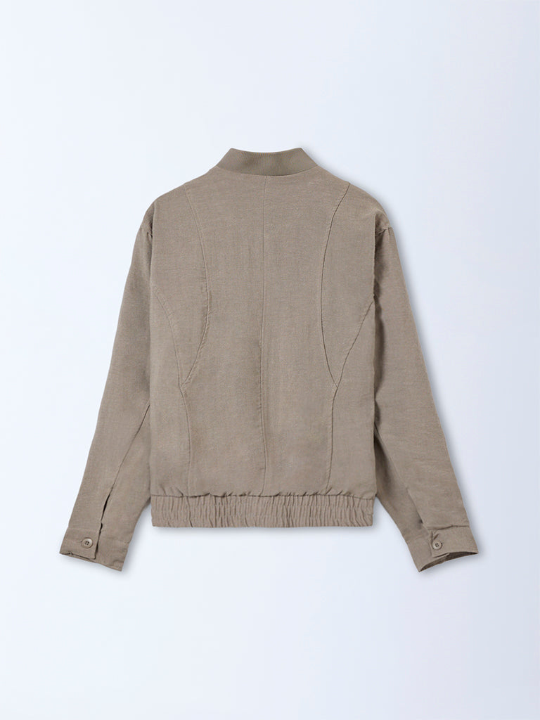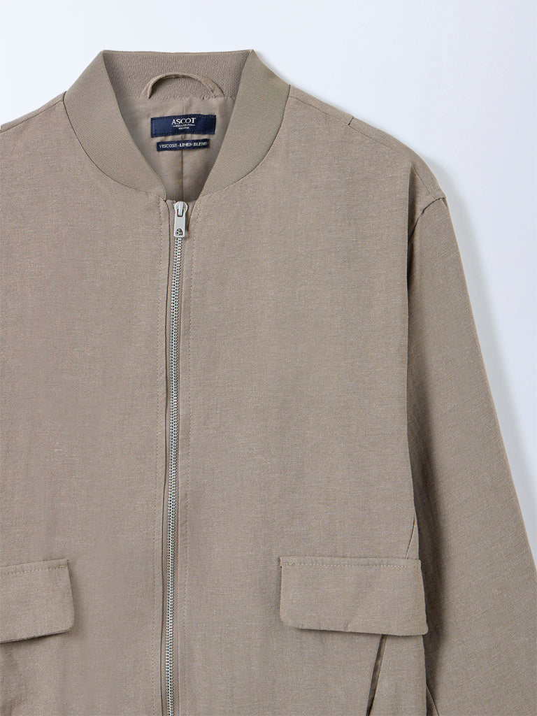 Ascot Taupe Solid Relaxed Fit Bomber Jacket