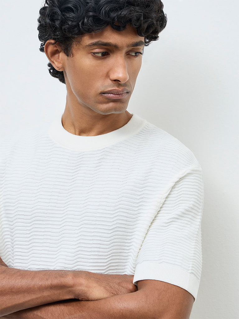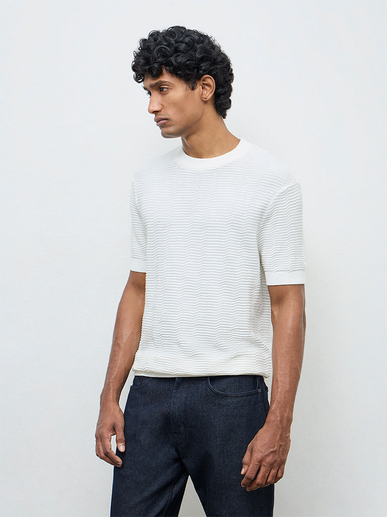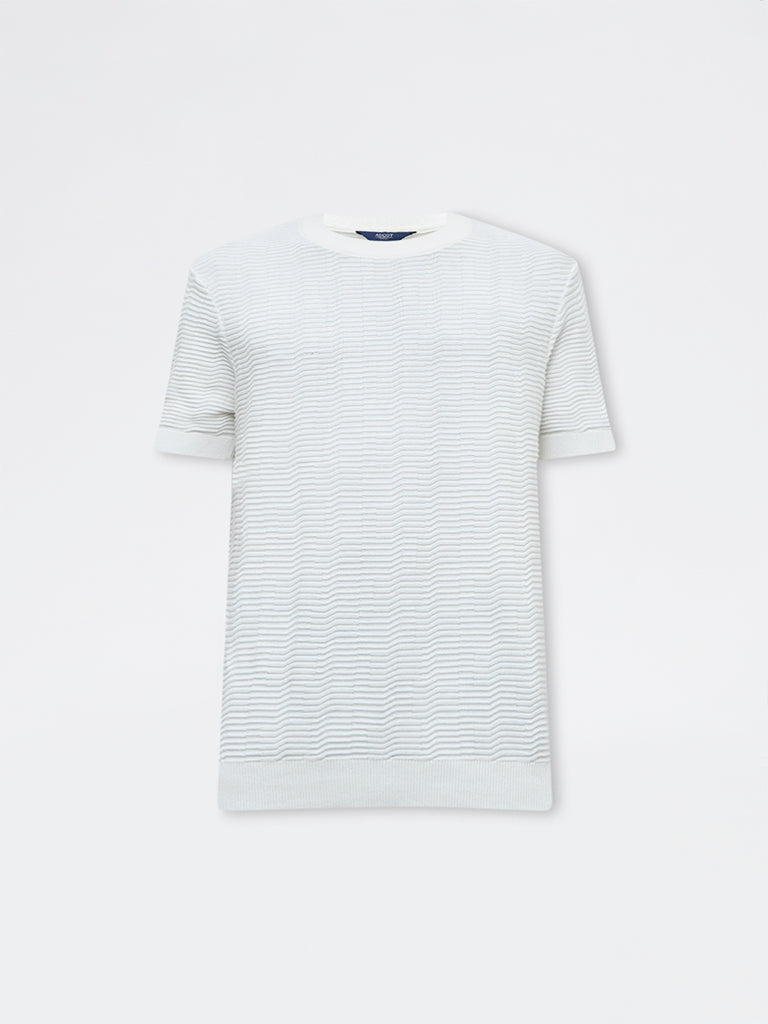 Ascot White Textured Relaxed-Fit Cotton T-Shirt
