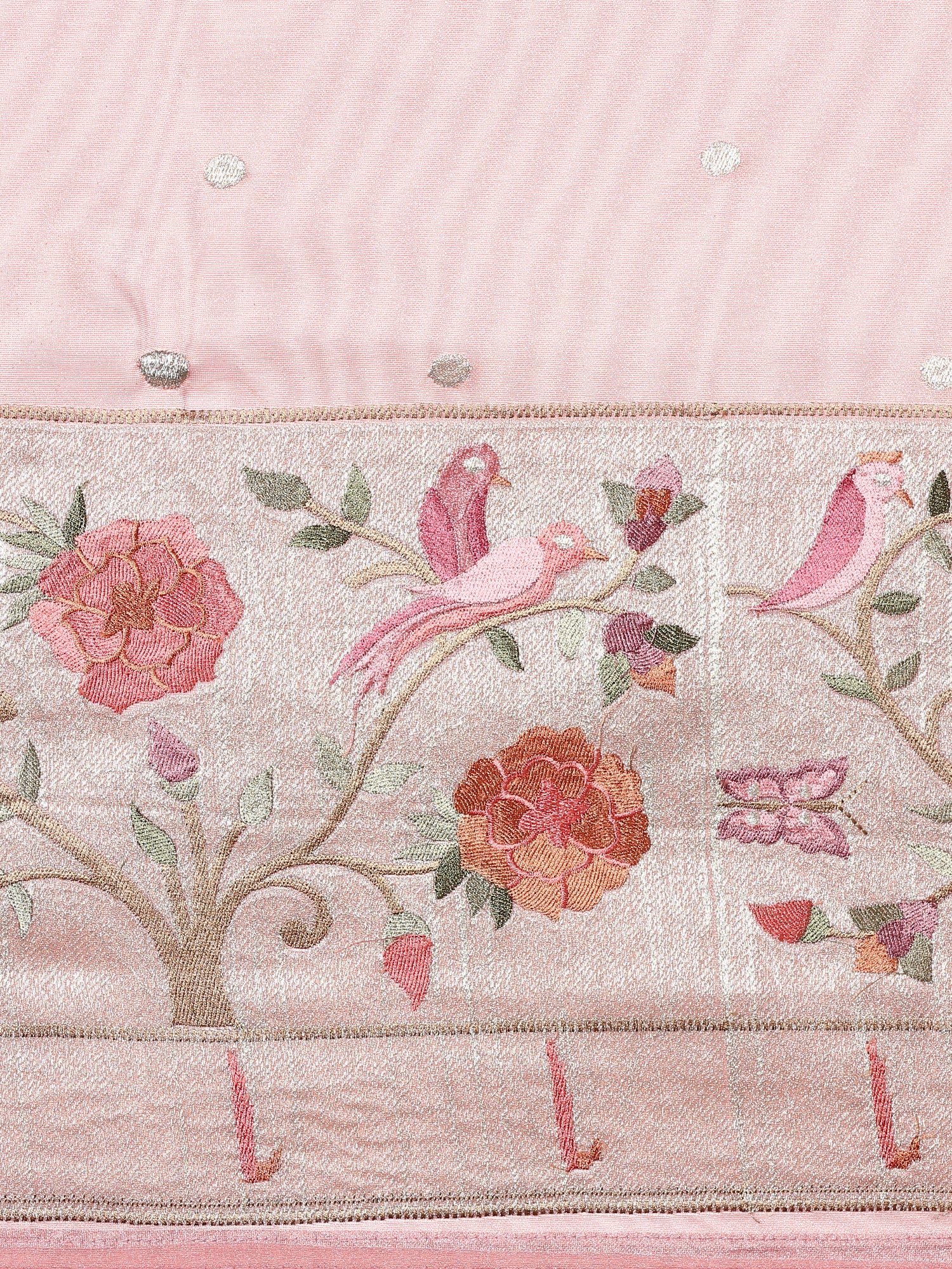 Baby Pink Banaras Silk Saree With Meena Border And Motifs