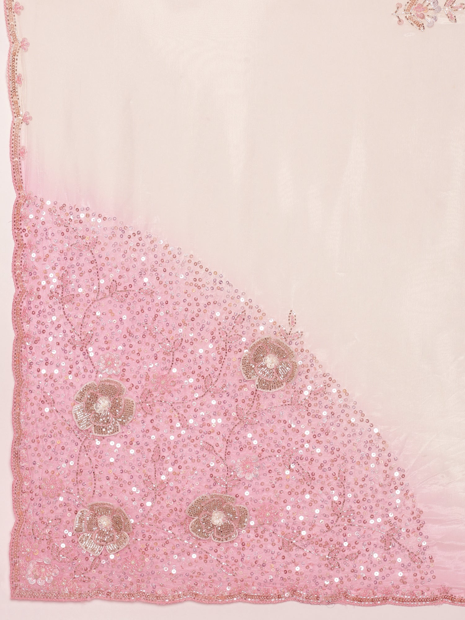 Embrace timeless elegance with this Baby Pink Crepe Saree, exquisitely adorned with delicate stone work. The soft crepe fabric drapes gracefully, enhancing your silhouette while providing comfort throughout the day. Perfect for festive occasions or formal gatherings, this saree offers a subtle shimmer that adds a refined touch to your ensemble, making you stand out with understated sophistication.