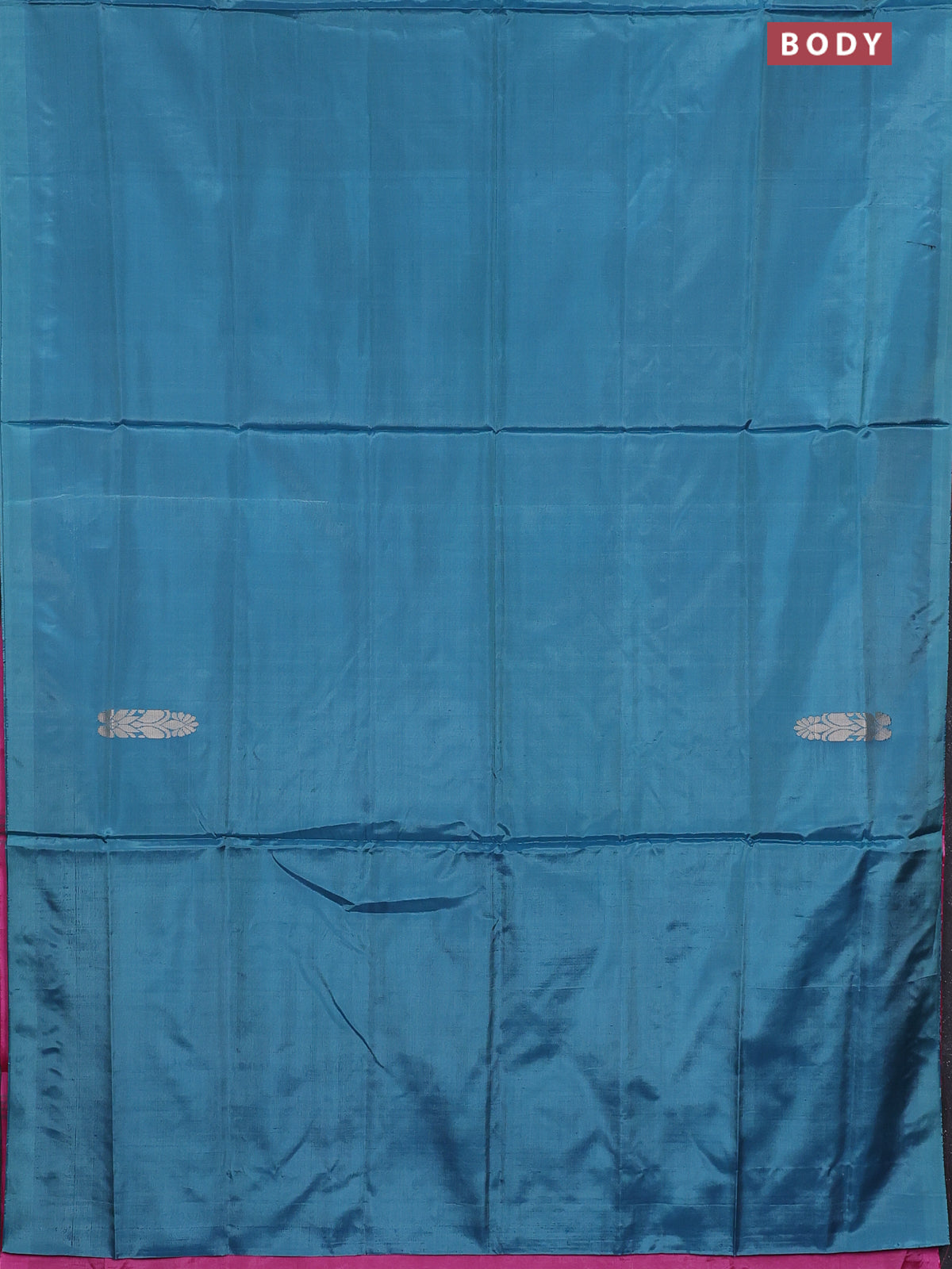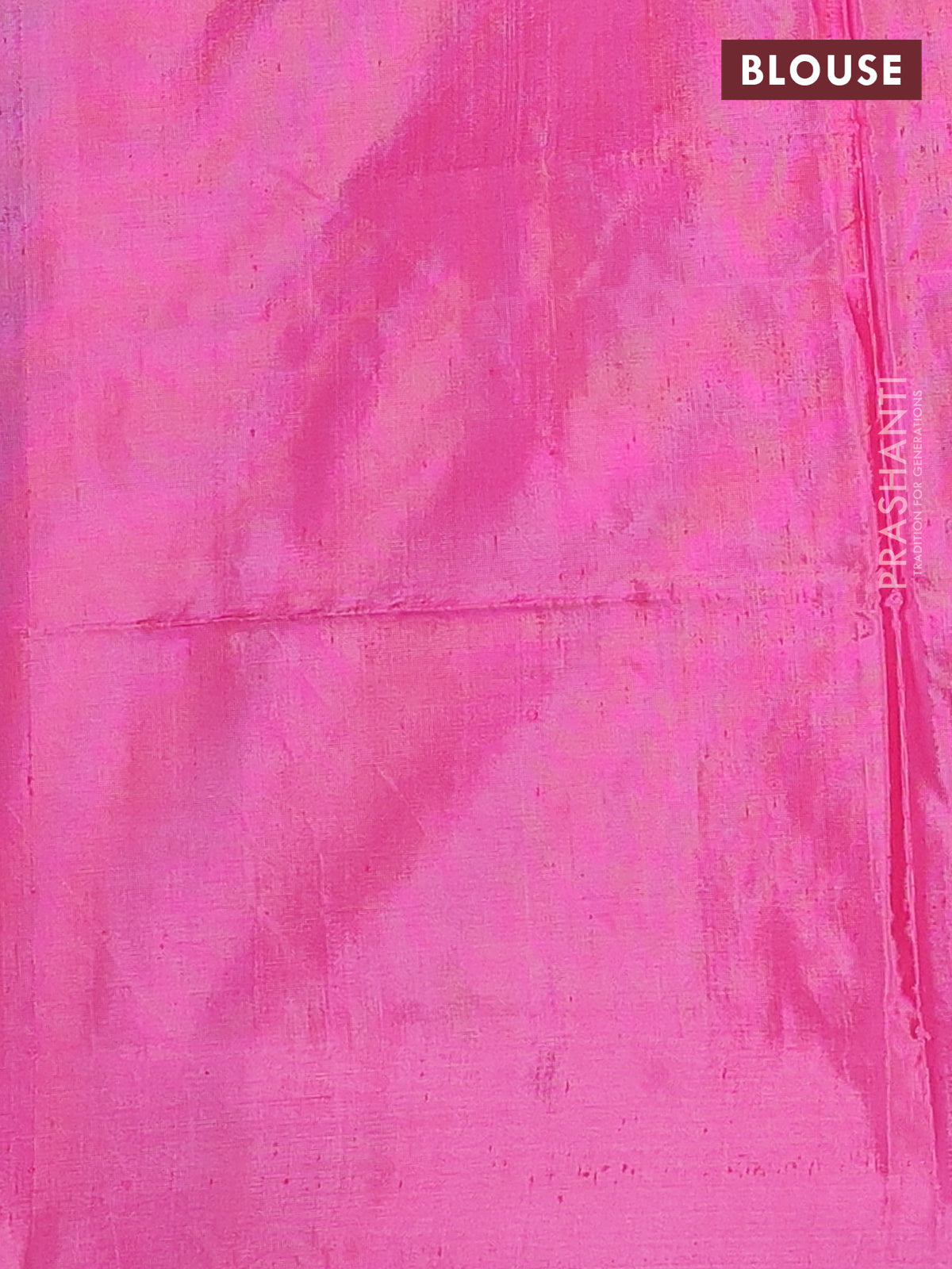 Banana pith saree teal green and pink with thread woven buttas in borderless style