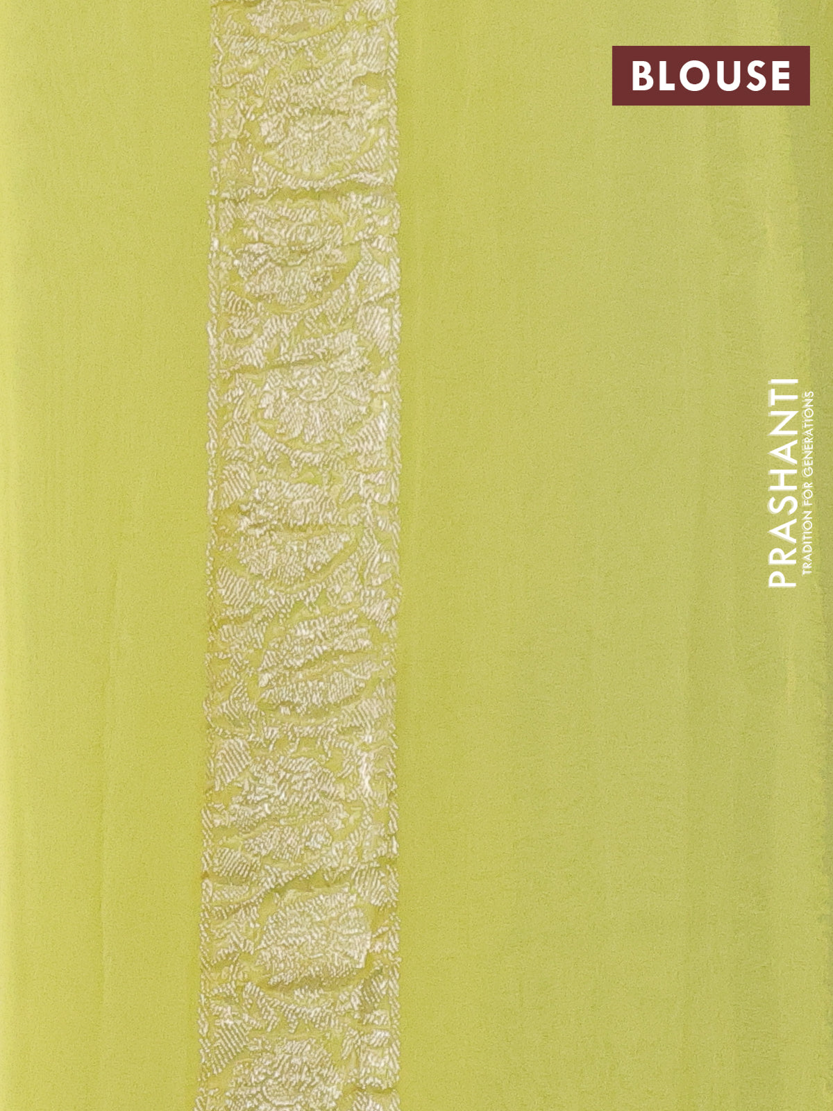 Banarasi chiffon silk saree black and pale yellow with silver zari woven buttas and silver zari woven border
