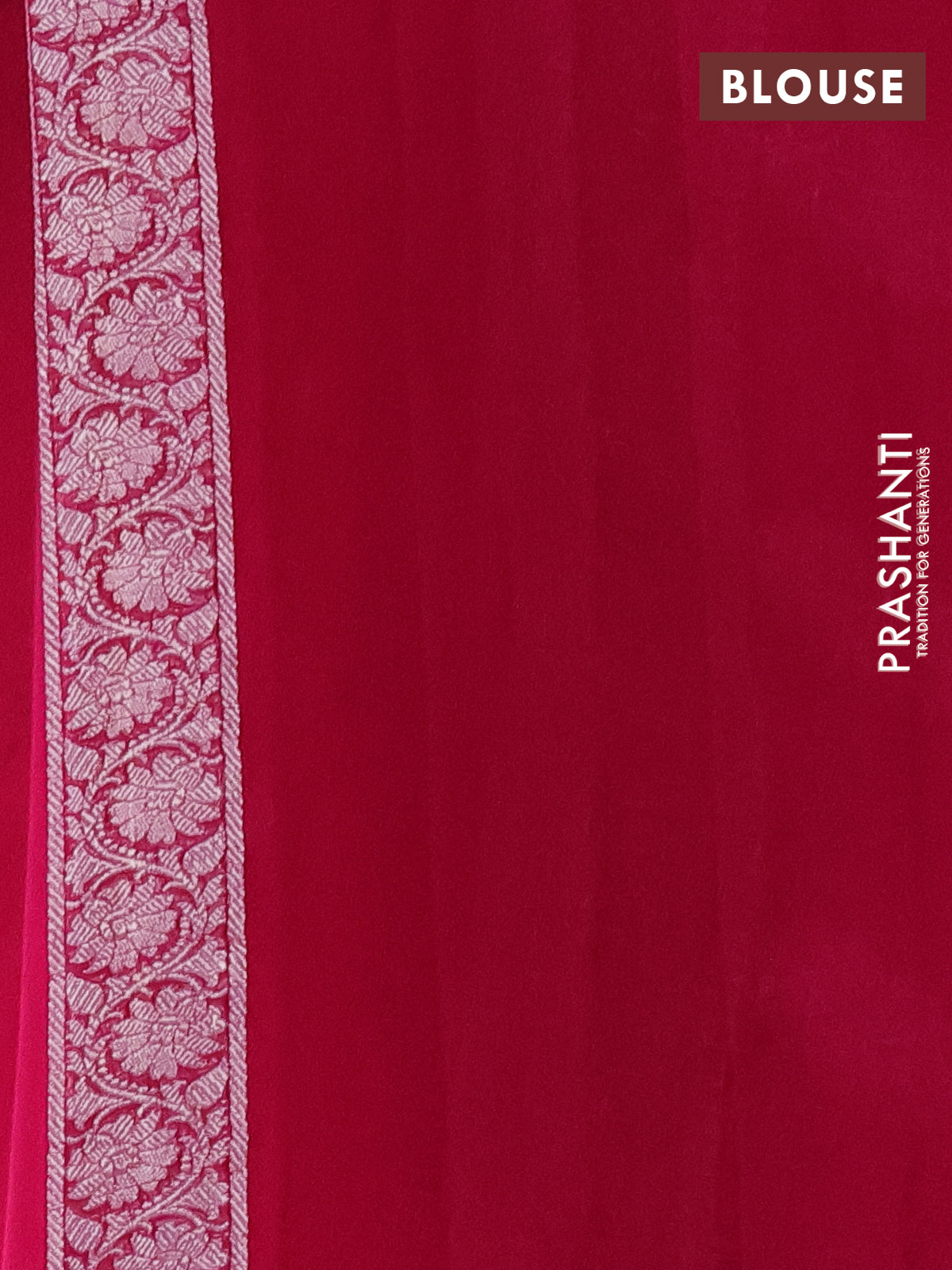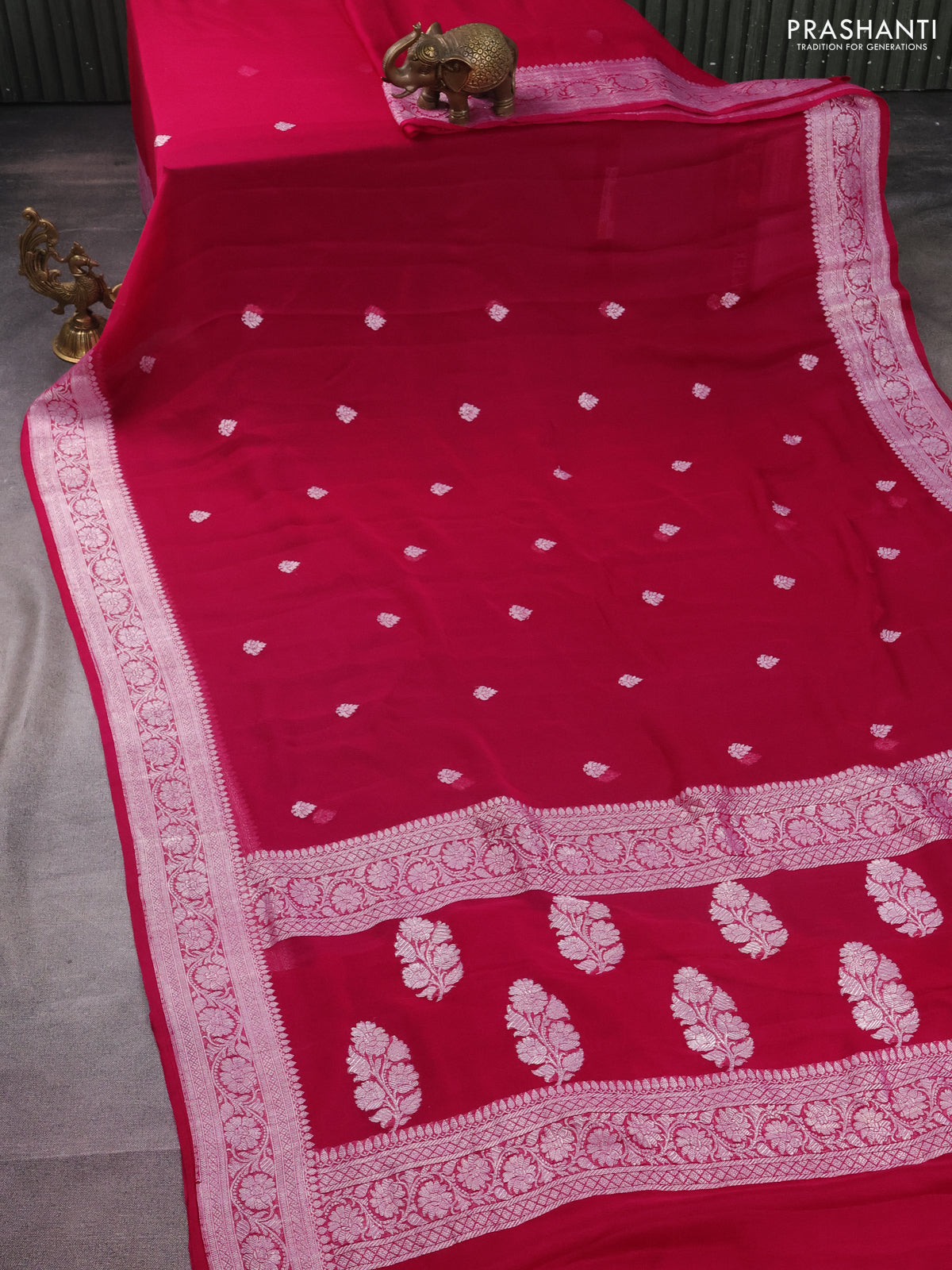 Banarasi chiffon silk saree dark pink with silver zari woven buttas and silver zari woven border