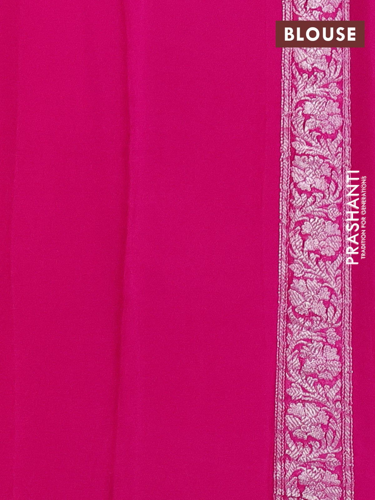 Banarasi chiffon silk saree red and pink with silver zari woven buttas and silver zari woven border