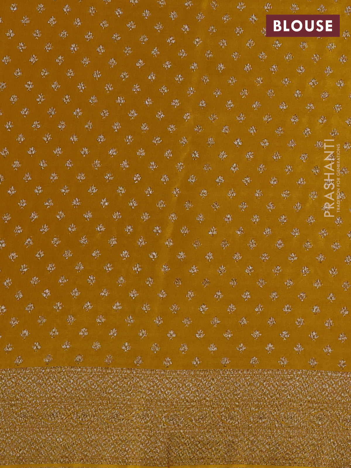 Banarasi crepe saree mustard yellow with allover geometric weaves and woven border