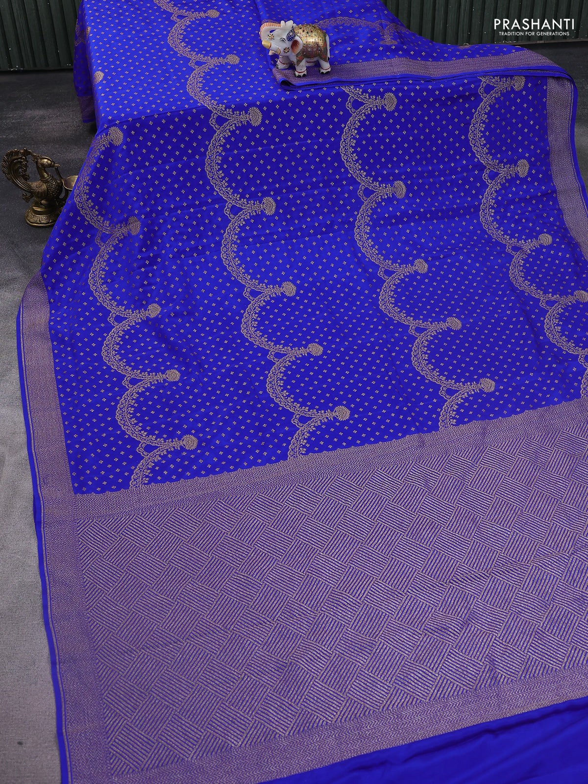 Banarasi crepe saree royal blue with allover butta weaves and woven border