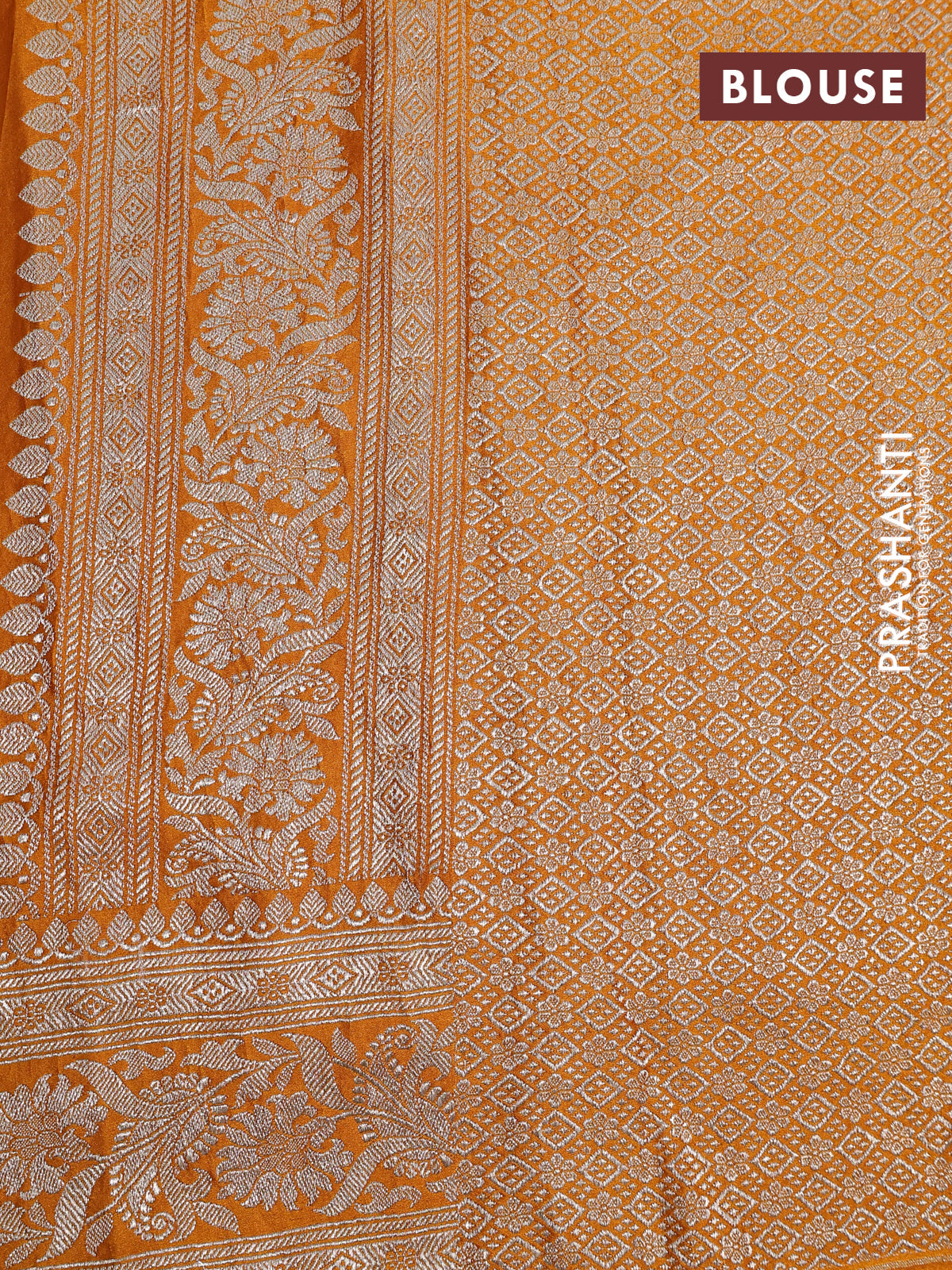 Banarasi crush crepe saree mango yellow with plain body and zari woven border