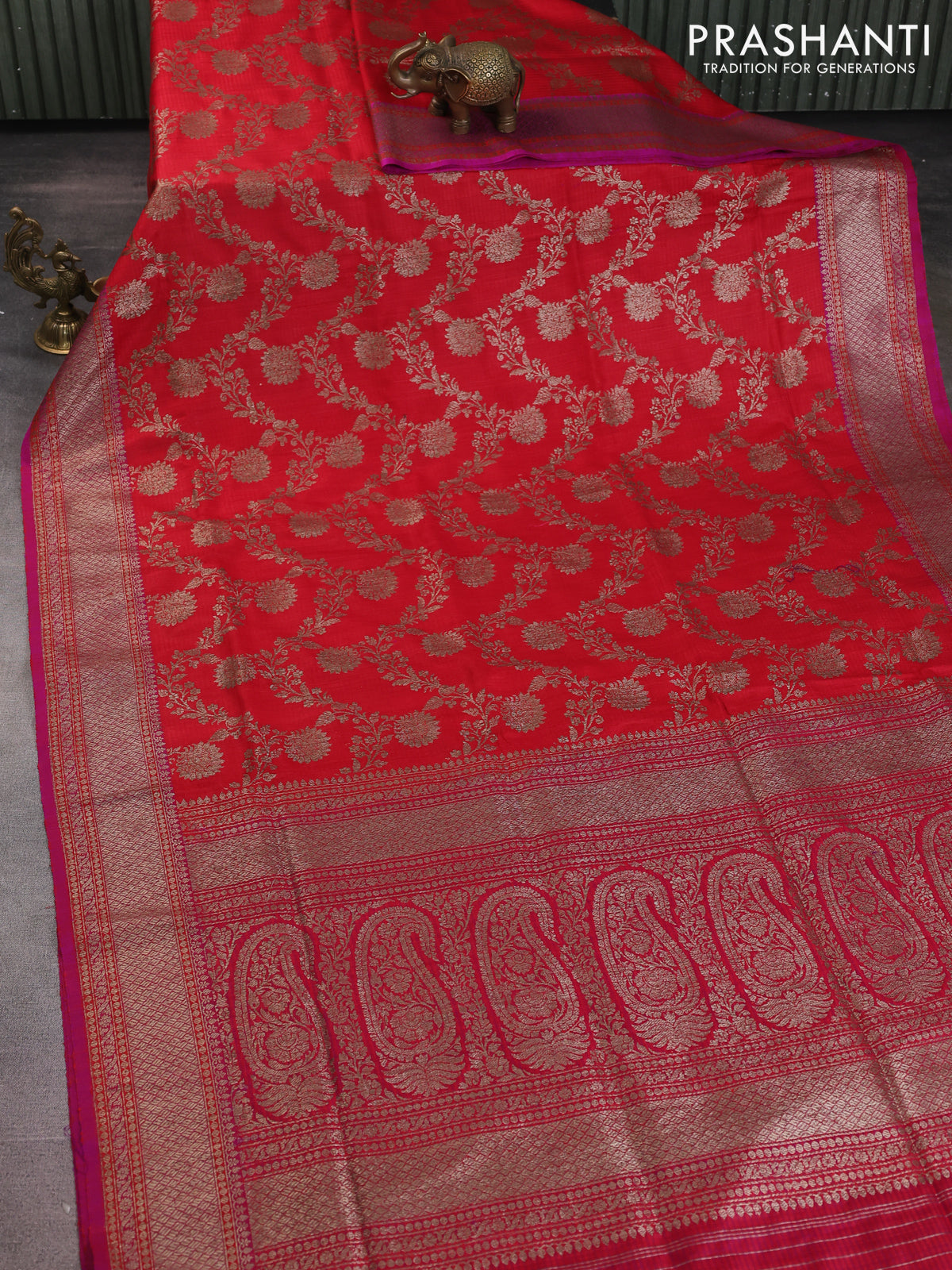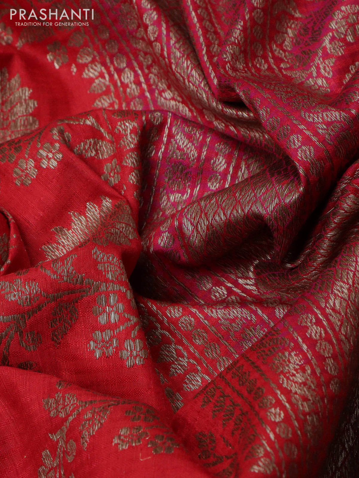 Banarasi dupion silk saree red and purple with allover thread & zari floral weaves and woven border