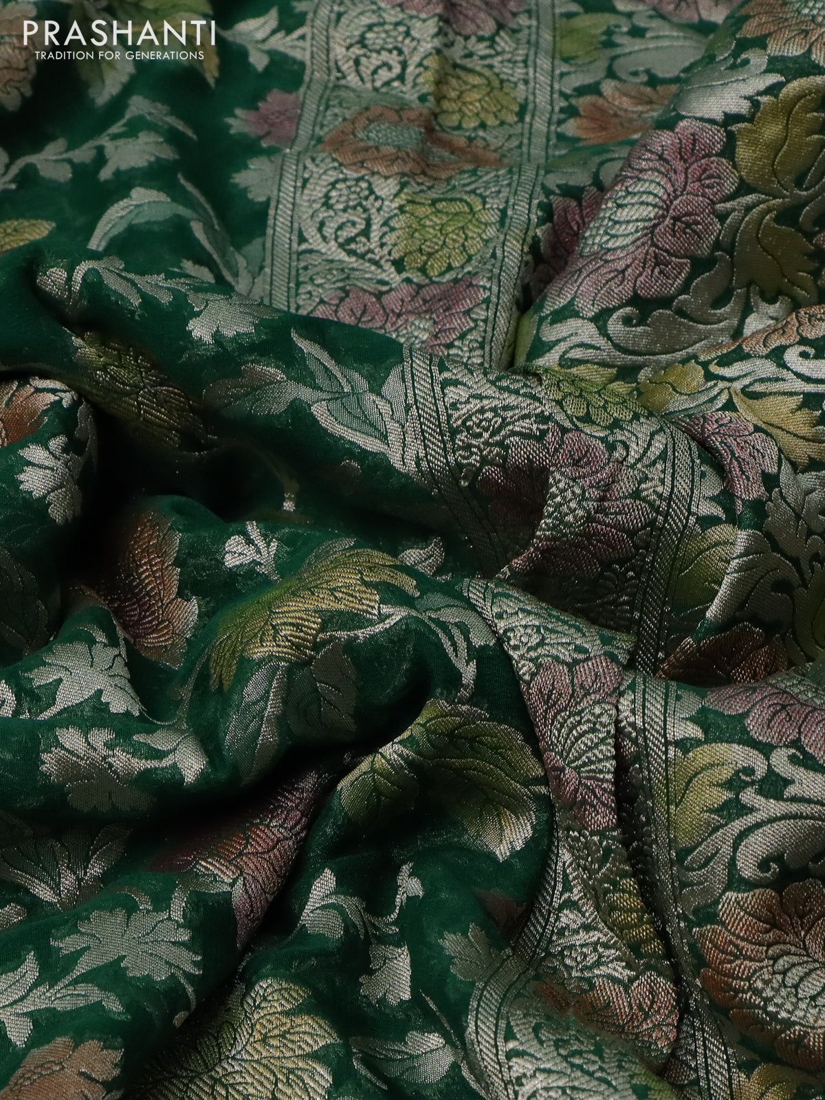 Banarasi georgette saree green with allover thread & zari floral weaves and woven border