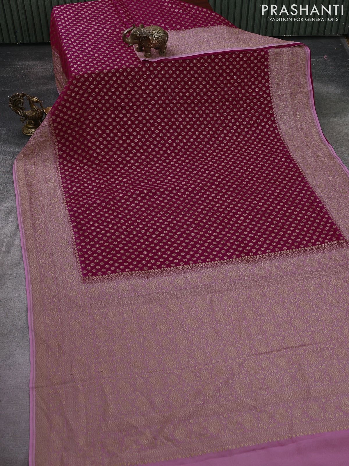 Banarasi georgette saree pink and pastel pink with allover woven buttas and woven border
