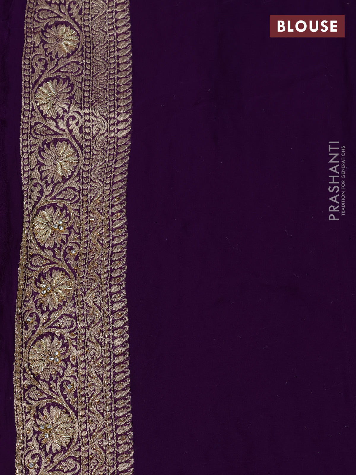 Banarasi georgette saree violet with woven buttas & stone work and zardosi work border