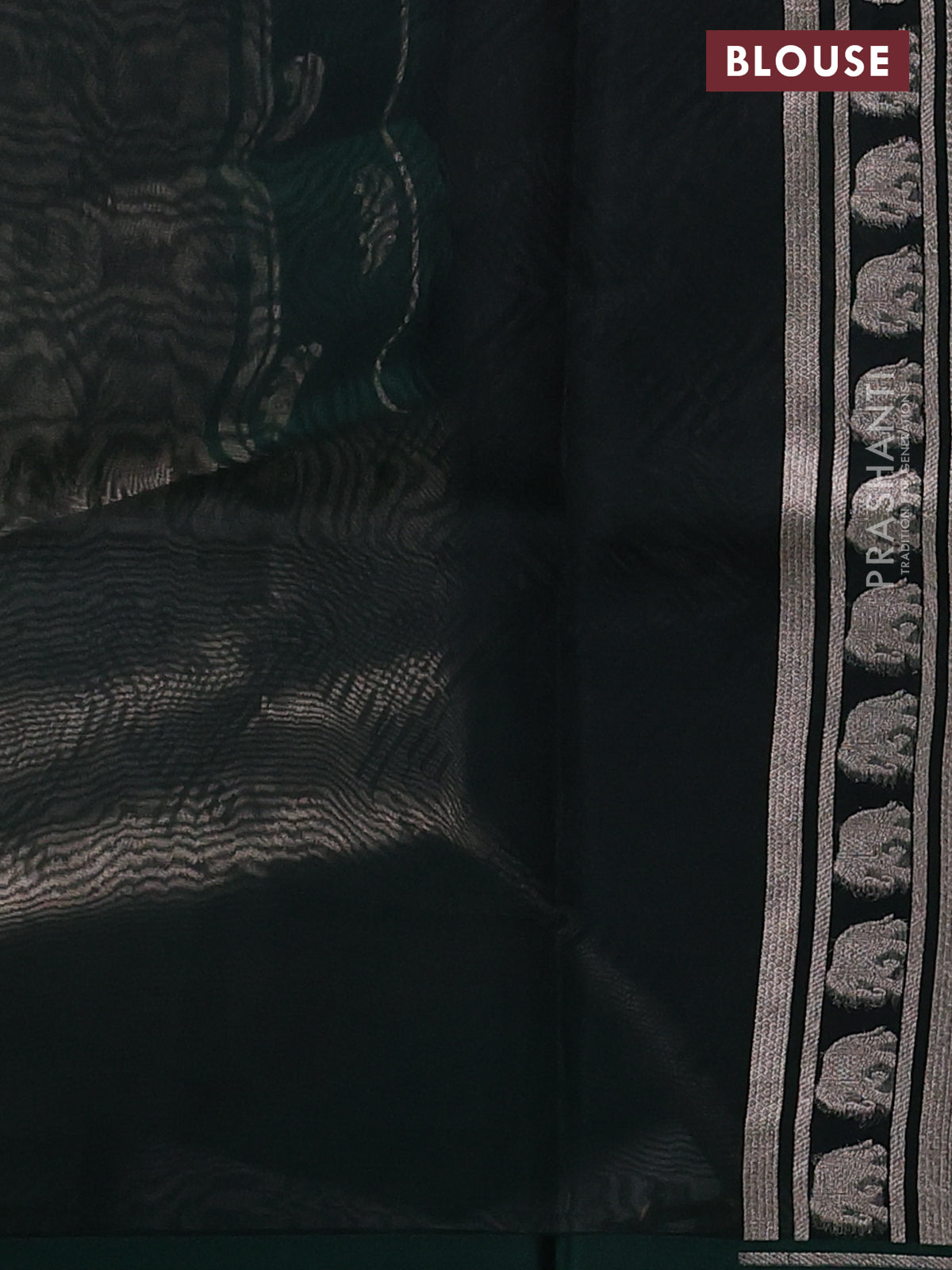 Banarasi katan silk saree green with allover silver zari woven brocade weaves and zari woven butta border