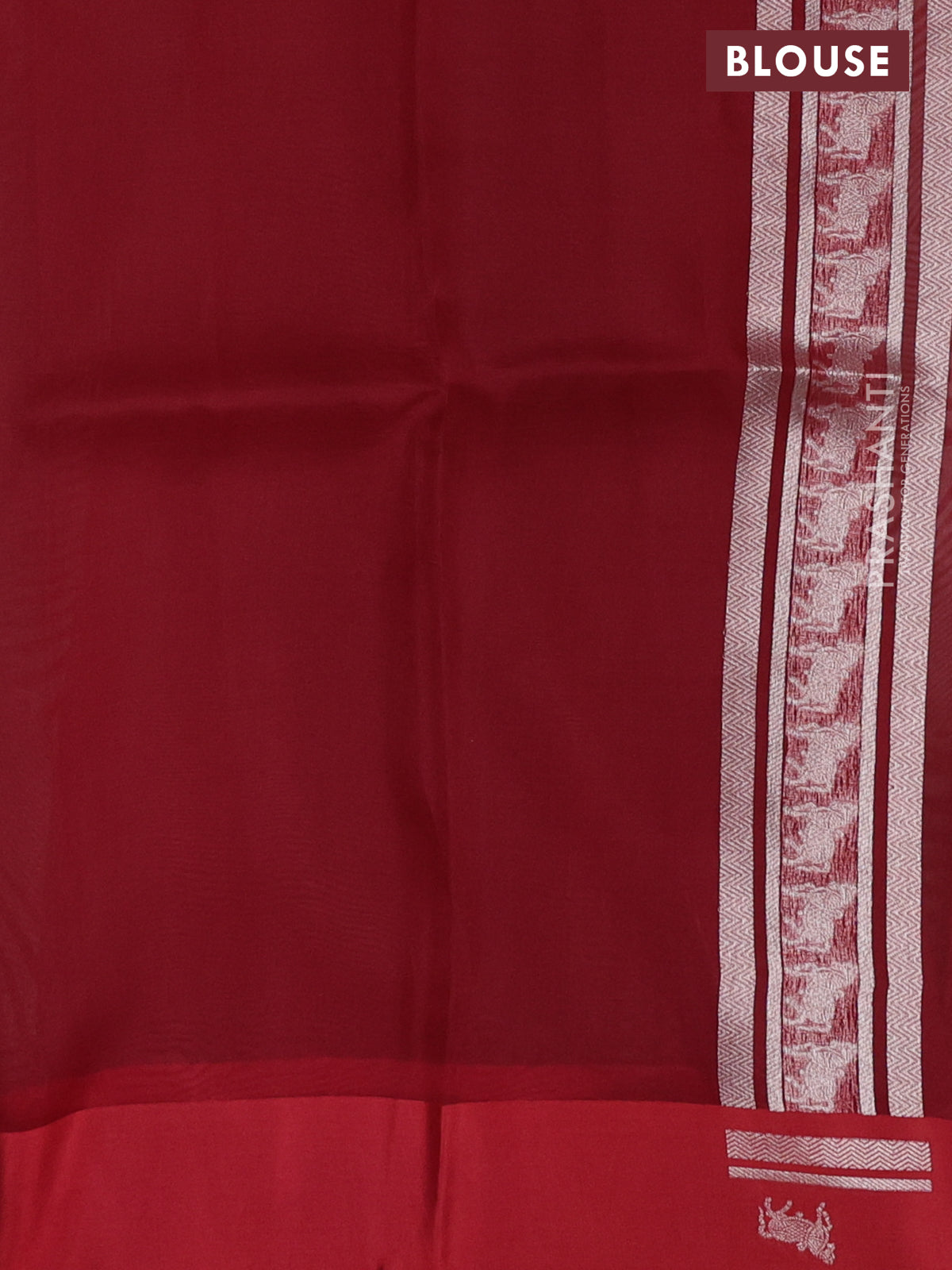 Banarasi katan silk saree red with allover silver zari woven brocade weaves and zari woven butta border