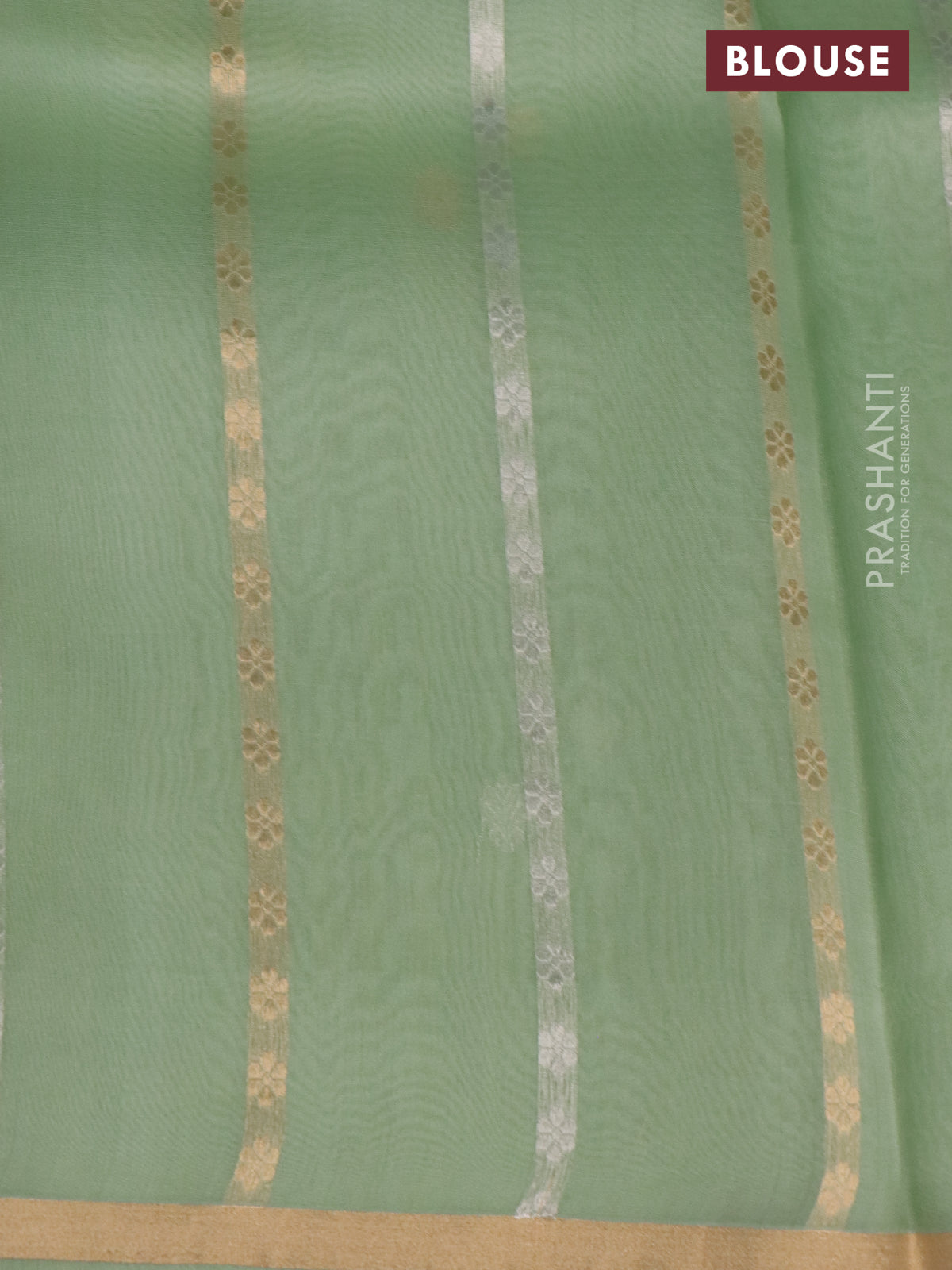 Banarasi organza silk saree pastel green with silver & gold zari weaves and zari woven piping border