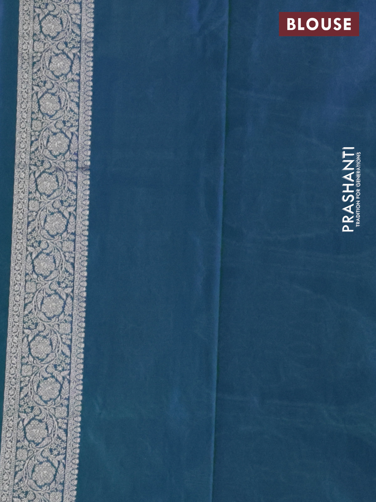 Banarasi semi katan silk saree dual shade of bluish green with allover silver & gold zari weaves and floral zari woven border