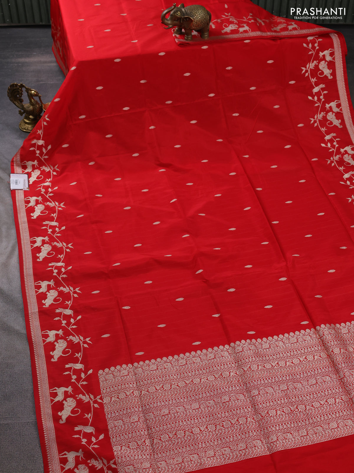 Banarasi semi katan silk saree red with zari woven buttas and rich zari woven border