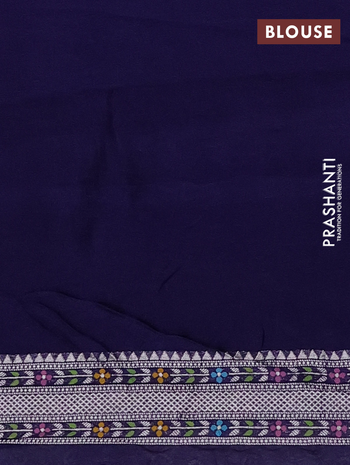 Banarasi semi raw silk saree navy blue with allover silver zari woven brocade weaves and floral design paithani border