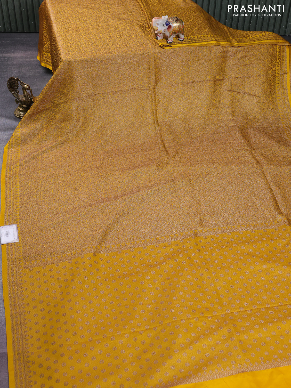 Banarasi semi silk saree yellow with allover thread & zari weaves and woven border
