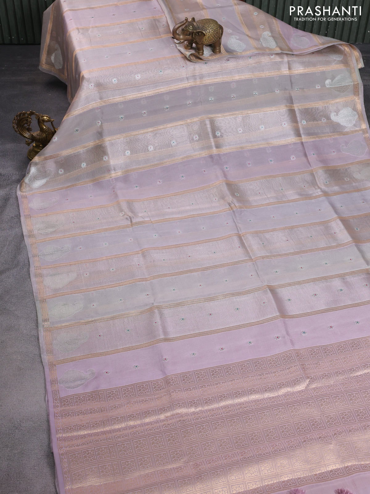 Banarasi tissue semi silk saree grey and lavender with zari weaves & floral buttas and silver zari woven butta border