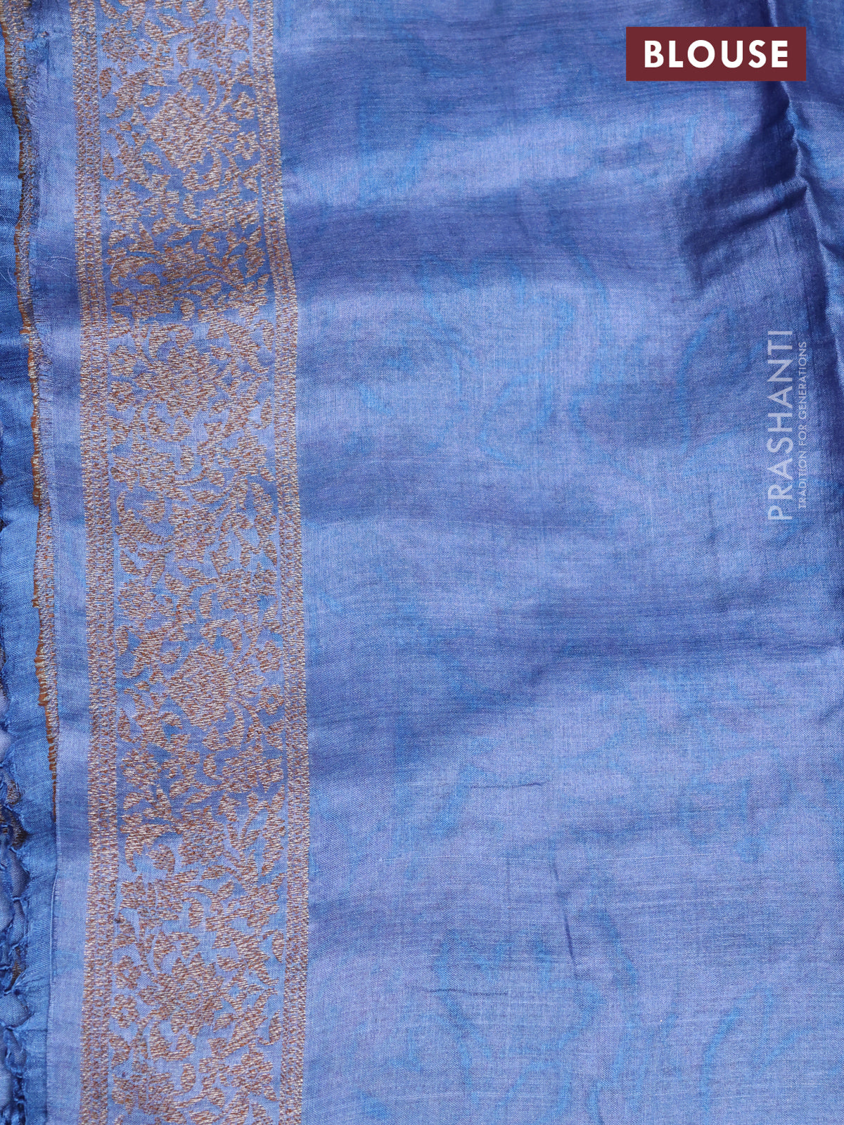 Banarasi tussar silk saree blue with woven buttas & floral digital prints and piping border