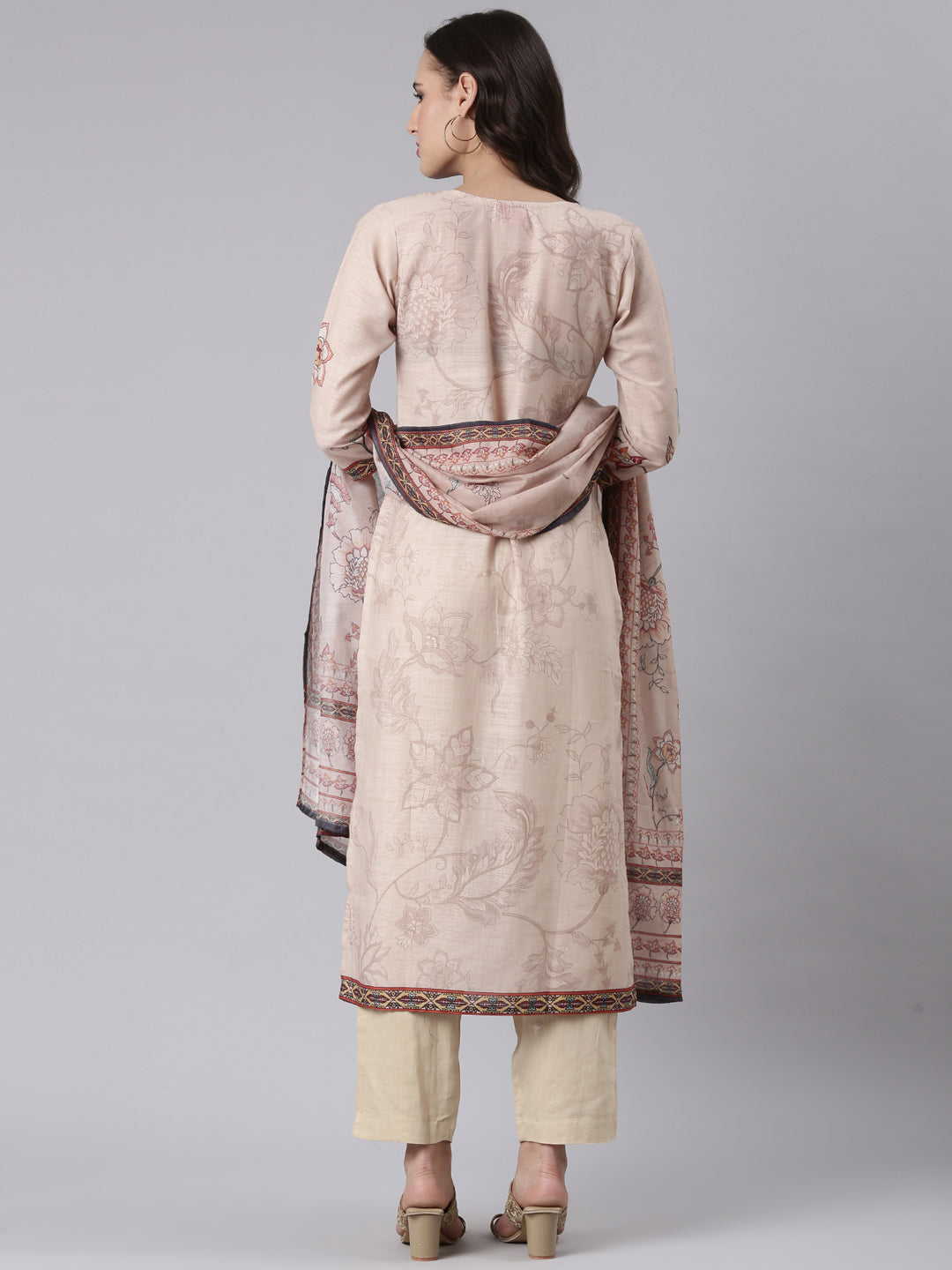 Experience comfort and style with this Beige Slub Rayon Printed Three-Piece Set. Made from breathable rayon fabric with a gentle slub texture, it provides a soft feel ideal for all-day wear. The coordinated print design adds a refined touch, making this set versatile for both casual and semi-formal occasions. Designed to support your style effortlessly, it ensures you look polished and feel comfortable throughout.
