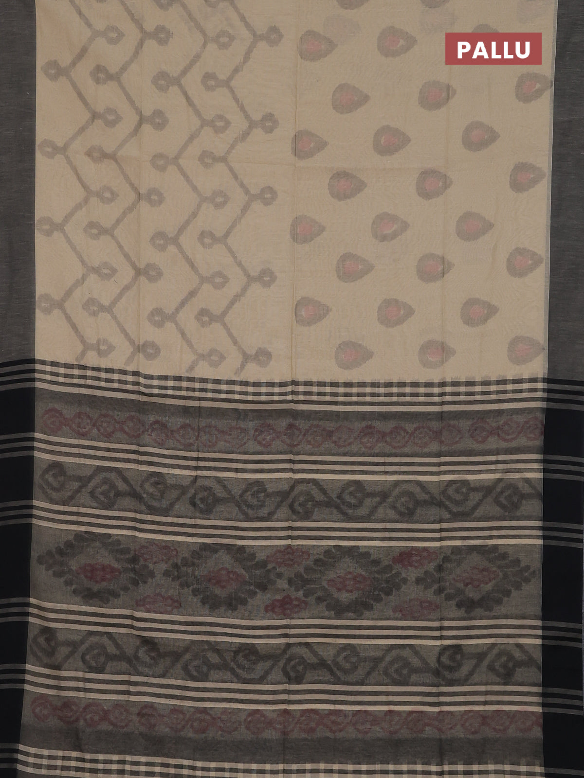 Bengal soft cotton saree beige and black with allover weaves and simple border