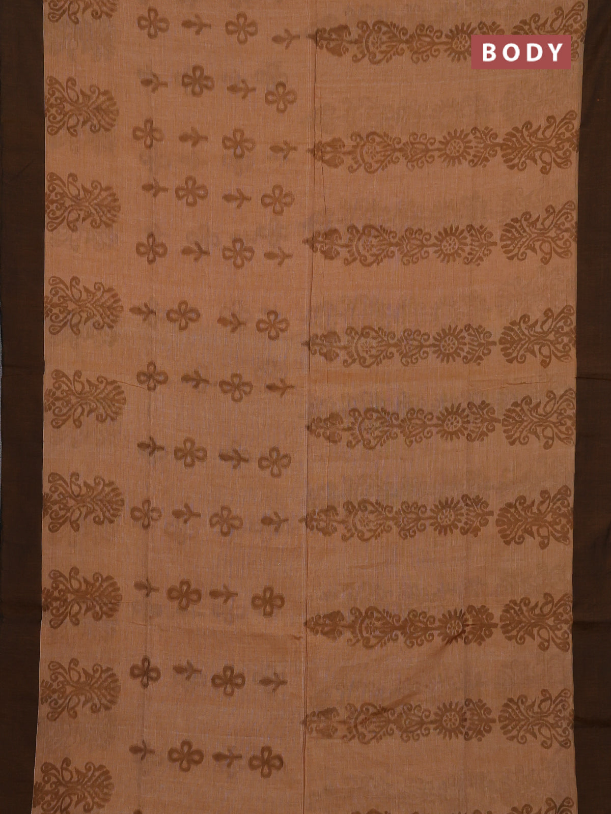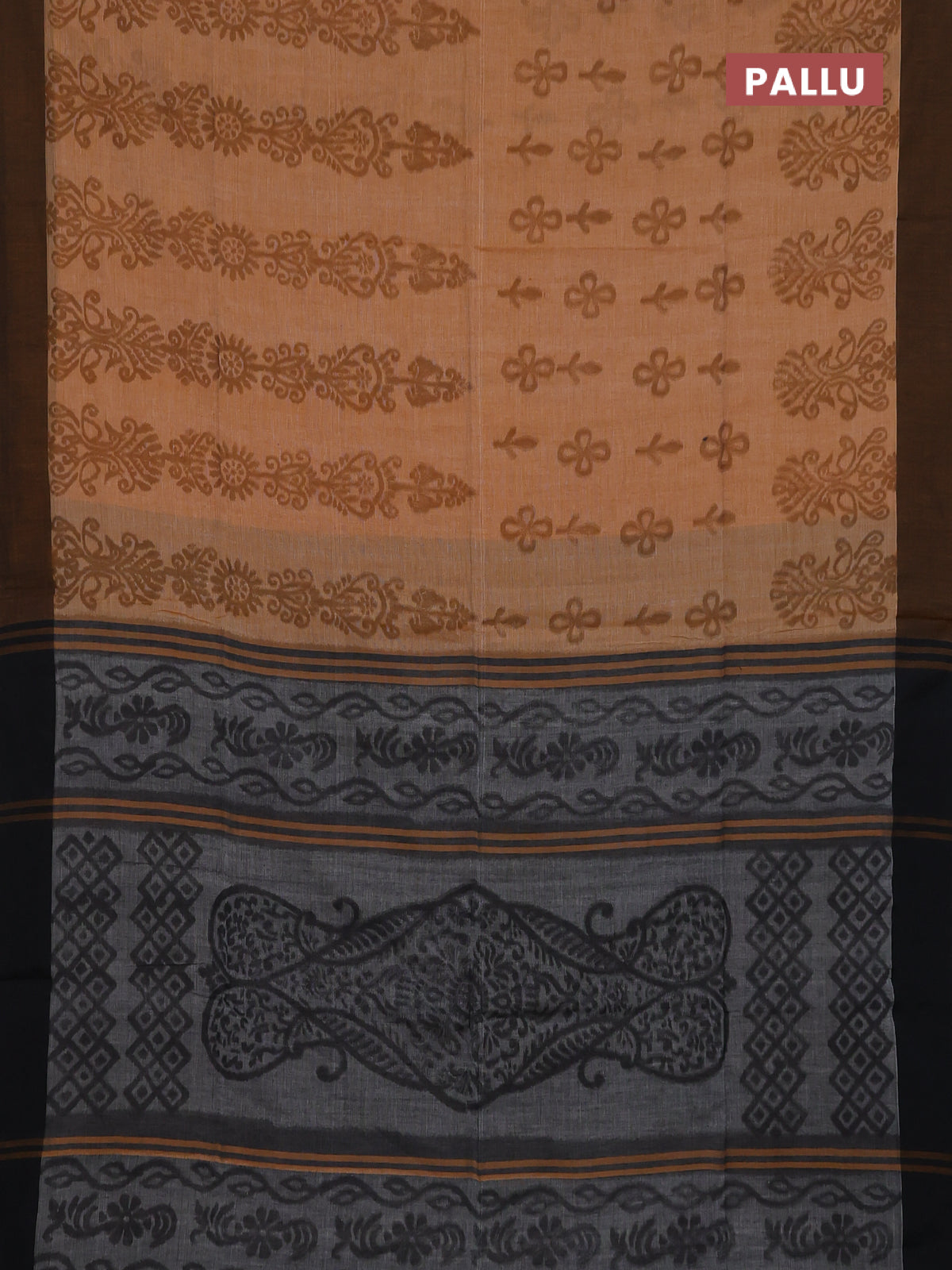 Bengal soft cotton saree dark mustard and grey with allover weaves and simple border