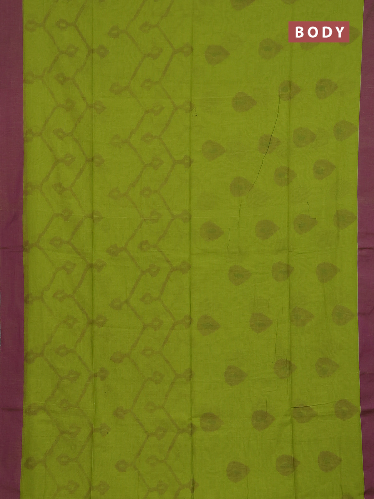 Bengal soft cotton saree light green and purple with allover weaves and simple border
