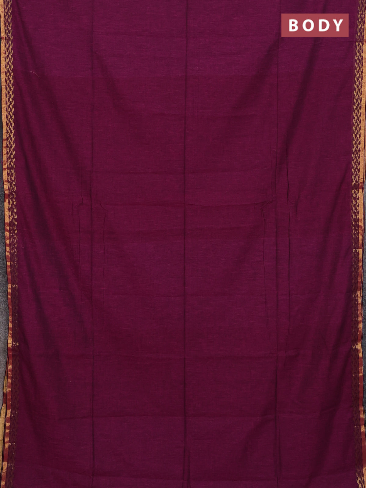 Bengal soft cotton saree magenta pink with plain body and zari woven border