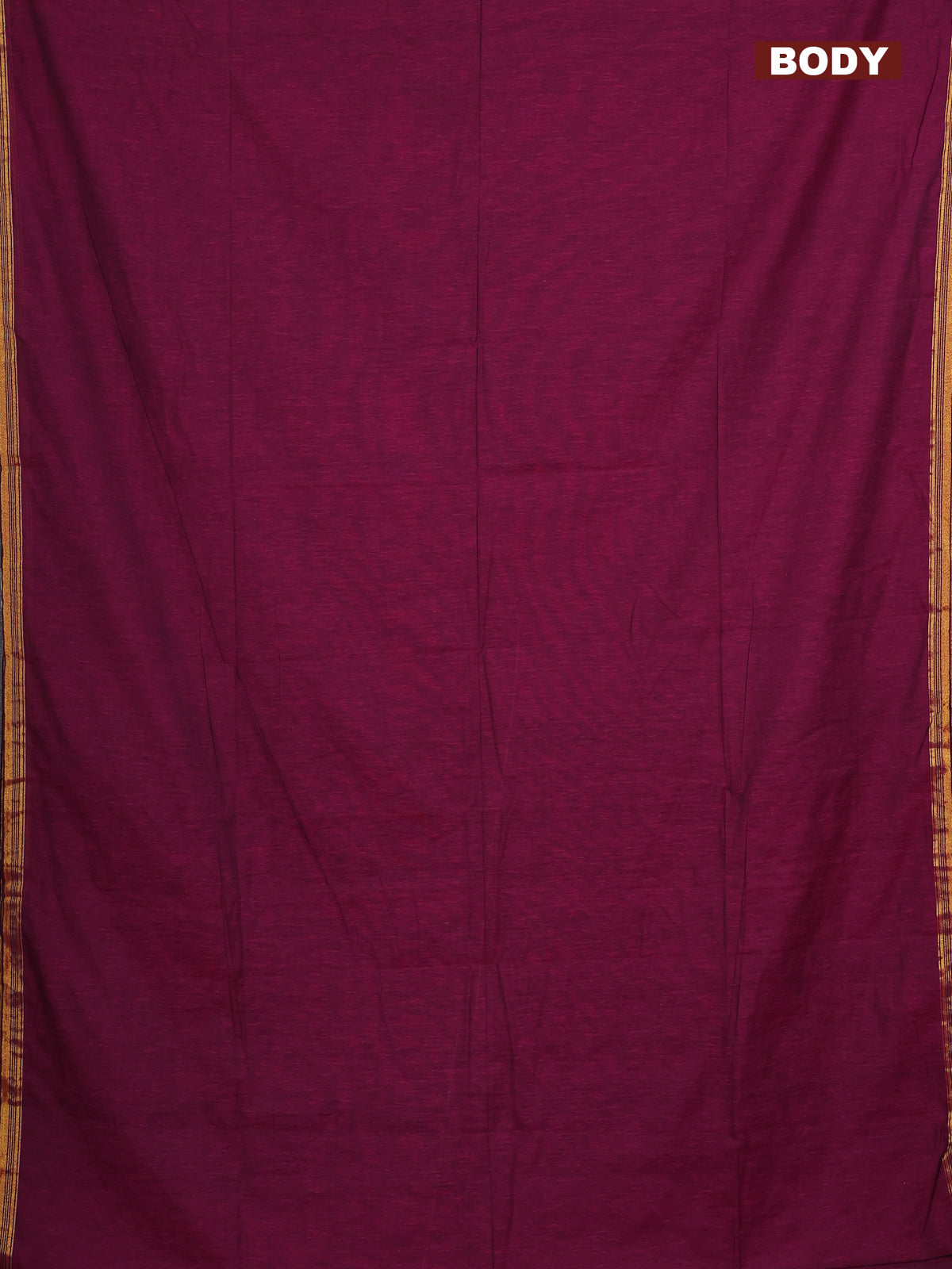 Bengal soft cotton saree magenta pink with plain body and zari woven piping border