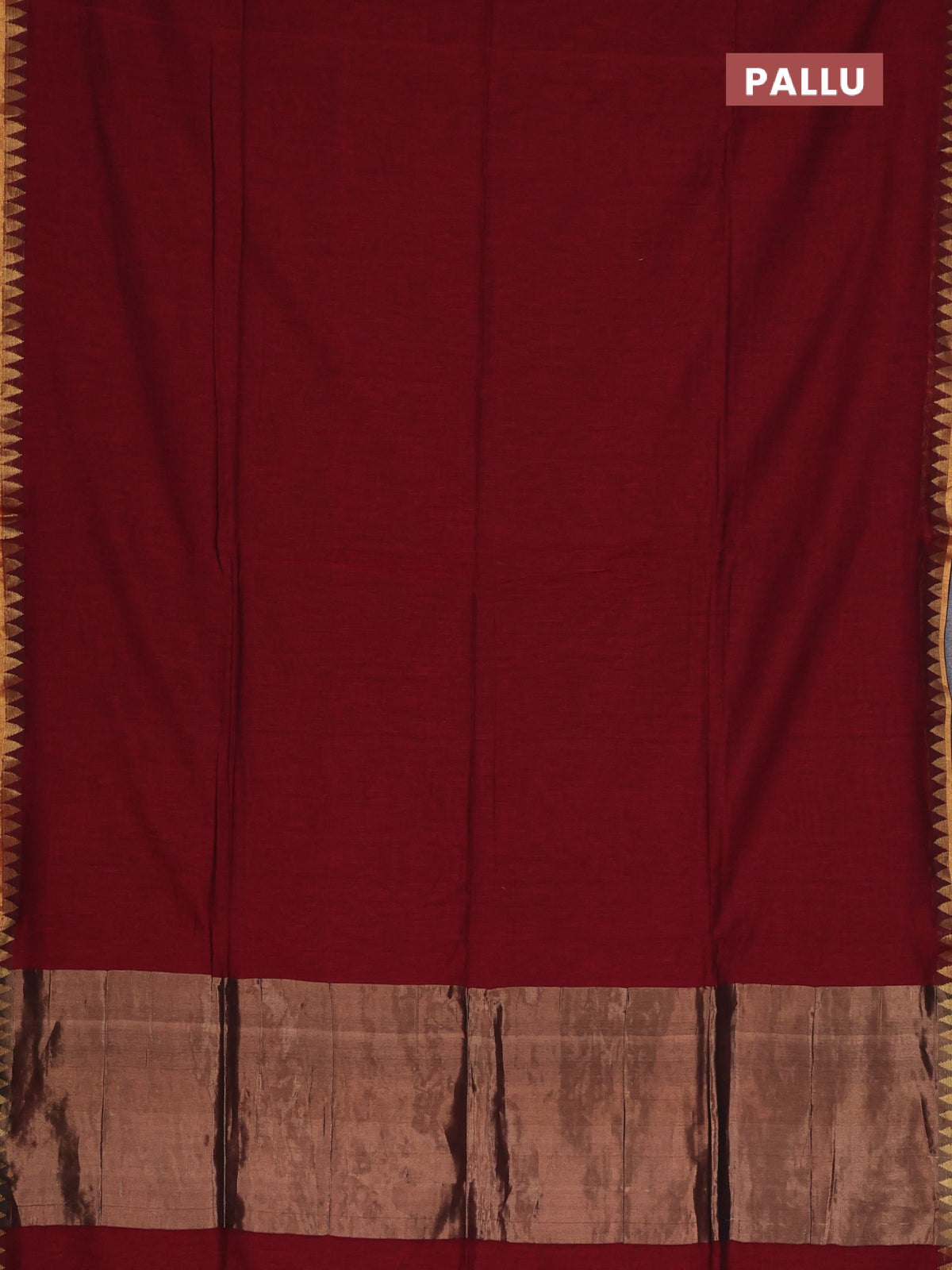 Bengal soft cotton saree maroon and green with plain body and zari woven border