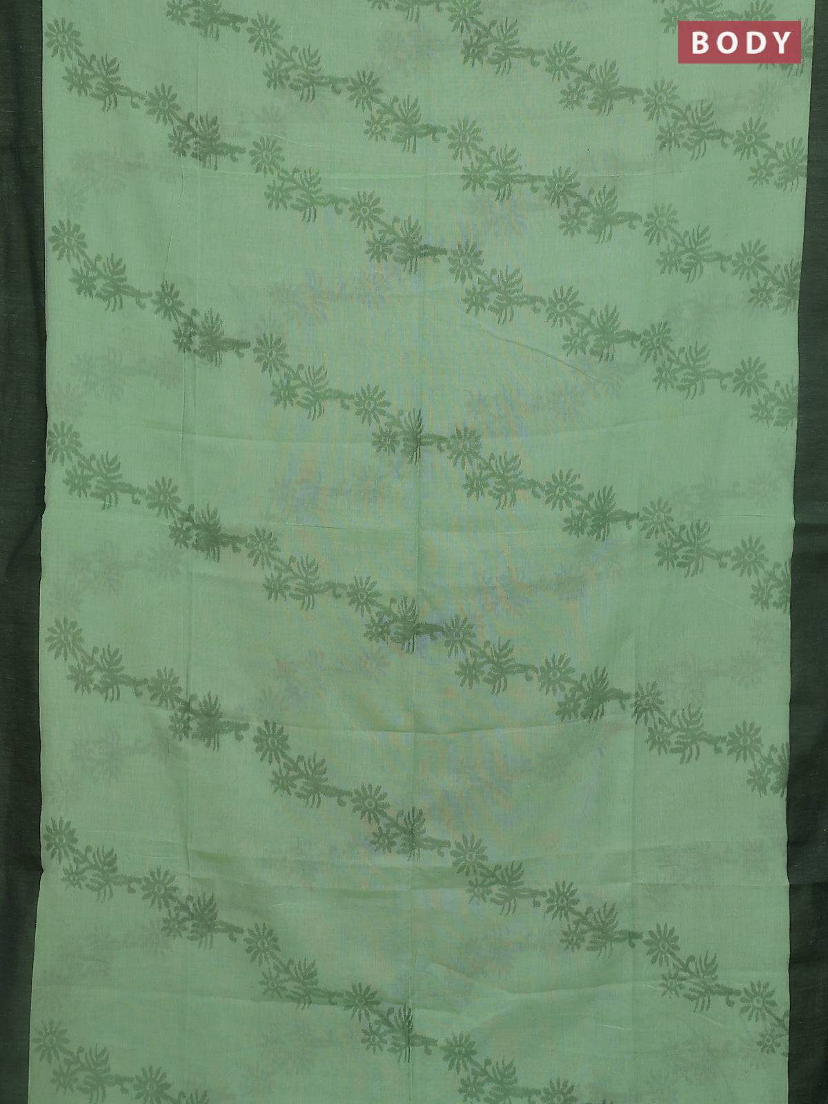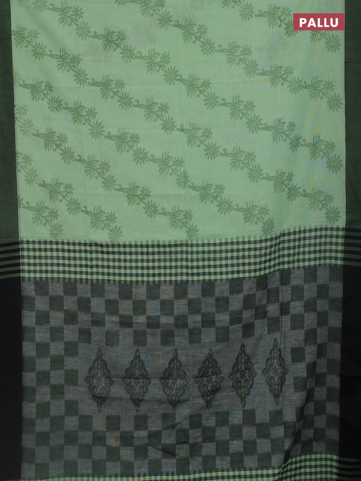 Bengal soft cotton saree pista green and black with allover weaves and simple border