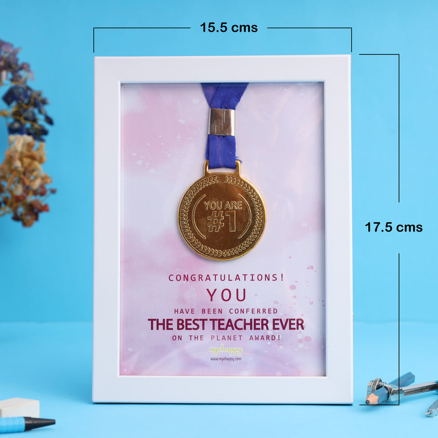 Teachers deserve all the appreciation in this world for everything they do. Give your favorite teacher the ultimate compliment with our Best Teacher Certificate. This sweet and adorably cute frame comes with a medal (yes, a real medal) that certifies your Teacher as the Best Teacher Ever. Go ahead, make their day!