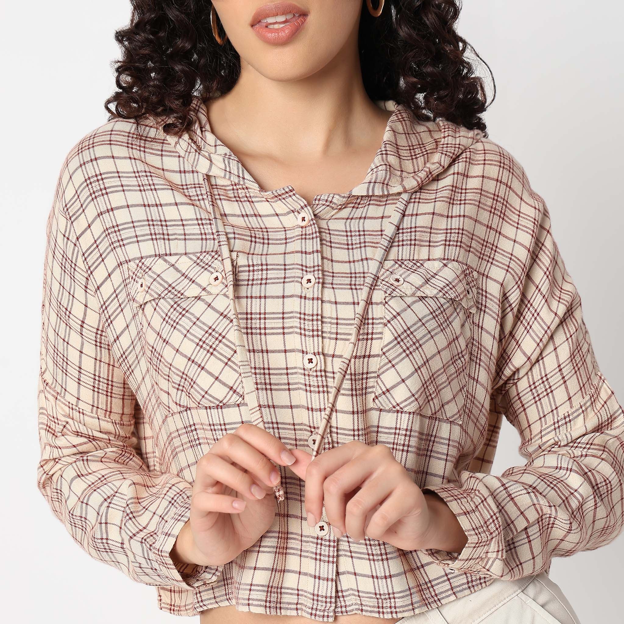 Experience the perfect blend of style and comfort with the Betty Checkered Hoodie Style Cropped Shirt. Crafted from 100% viscose, this shirt offers a luxurious feel against your skin, ensuring you stay comfortable all day long. The checkered pattern adds a touch of classic charm, while the hoodie style brings a modern twist, making it a versatile piece for any wardrobe. Whether you're heading out for a casual day with friends or a relaxed evening, this shirt adapts effortlessly to your lifestyle.