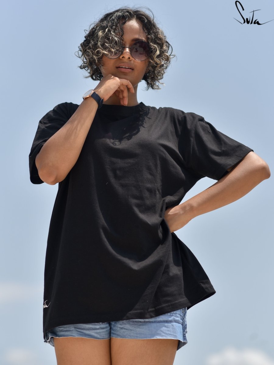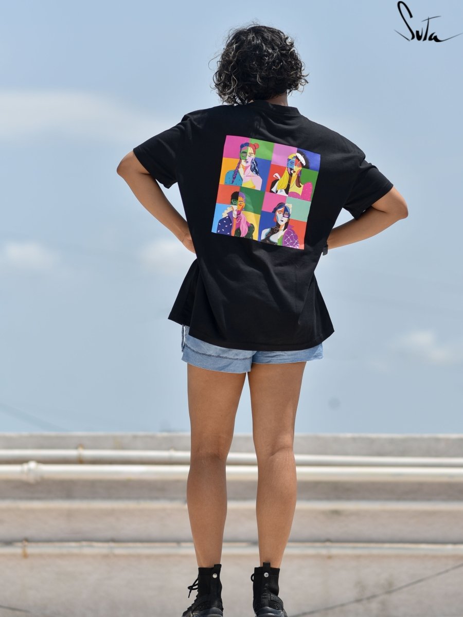 These statement tee-shirts are made of 100 per cent recycled fabric – 40 per cent is recycled from waste plastic bottles and 60 per cent from cotton textile waste. The plastic bottles are shredded into chips, which are then melted to extract polyester. The pre-consumer textile waste from mills is repurposed by separating the cotton scraps by colour. The scraps are then converted into recycled cotton fibre. Both these fibres are fused together to create a fibre that’s 100 per cent recycled. The fibre is spun into yarn, which is then woven into fabric.