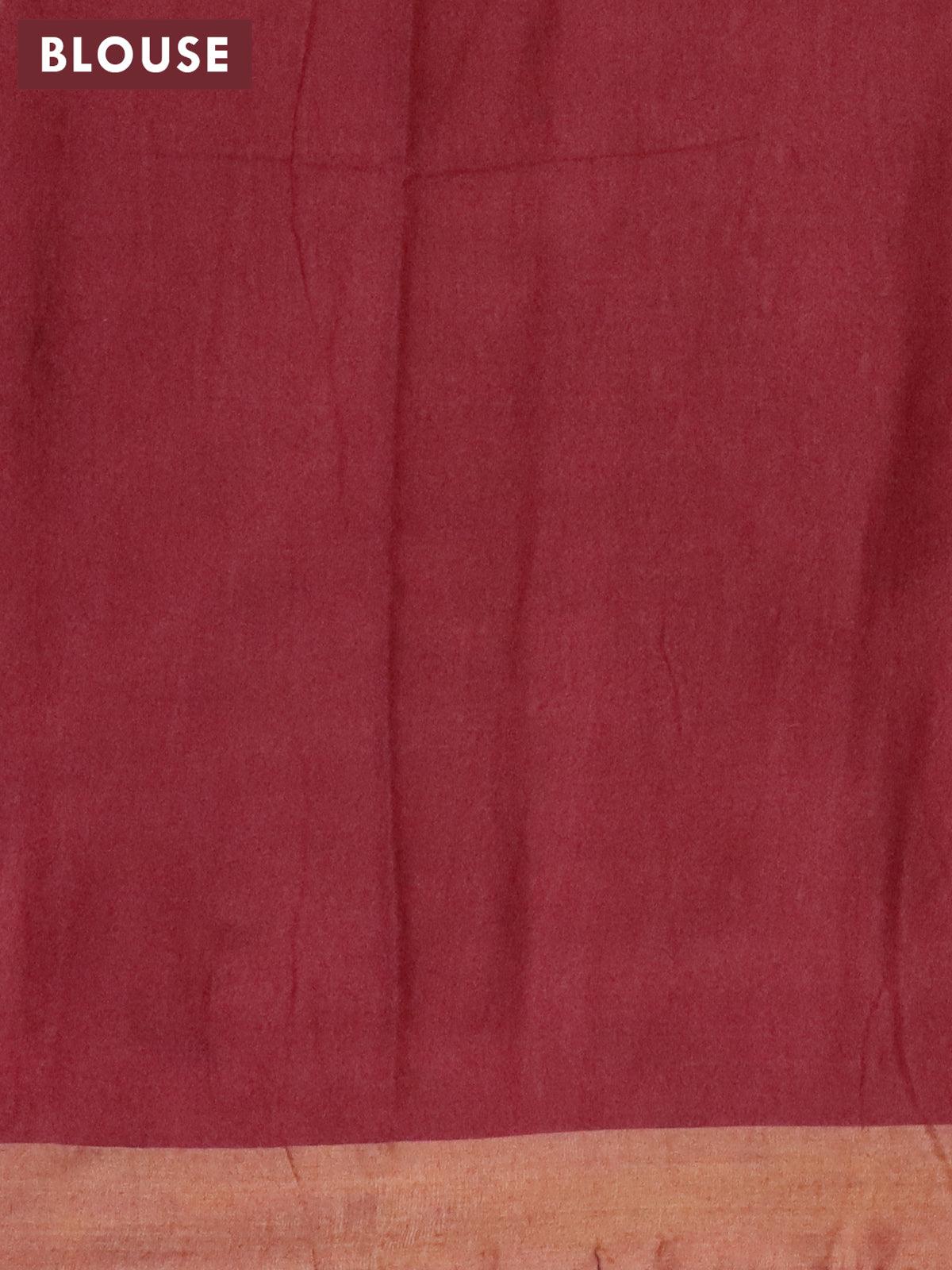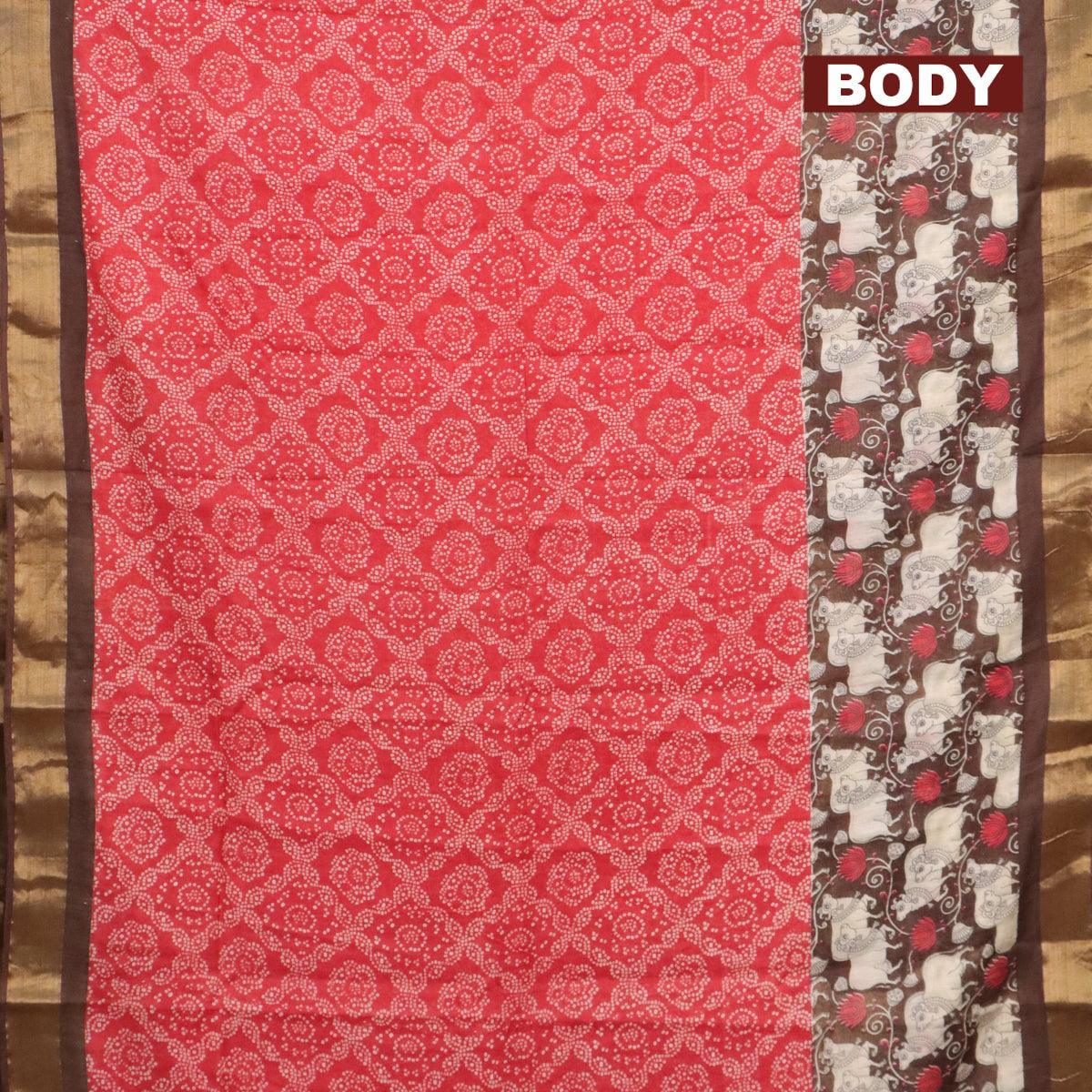 Bhagalpuri saree red and brown with allover bandhani prints and long pichwai printed zari woven border