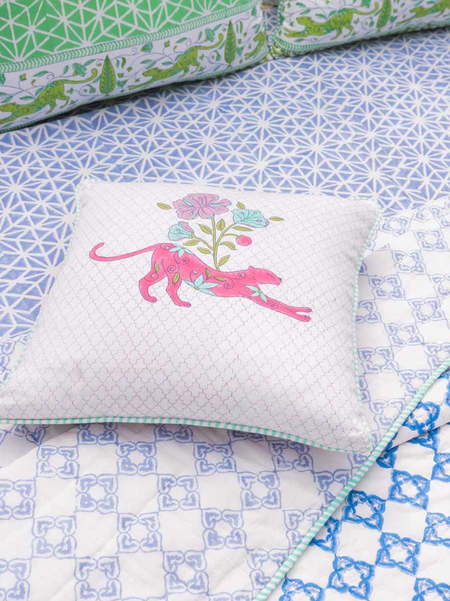 Bhairav Hand Block Printed Cotton Cushion Cover - 16 Inch