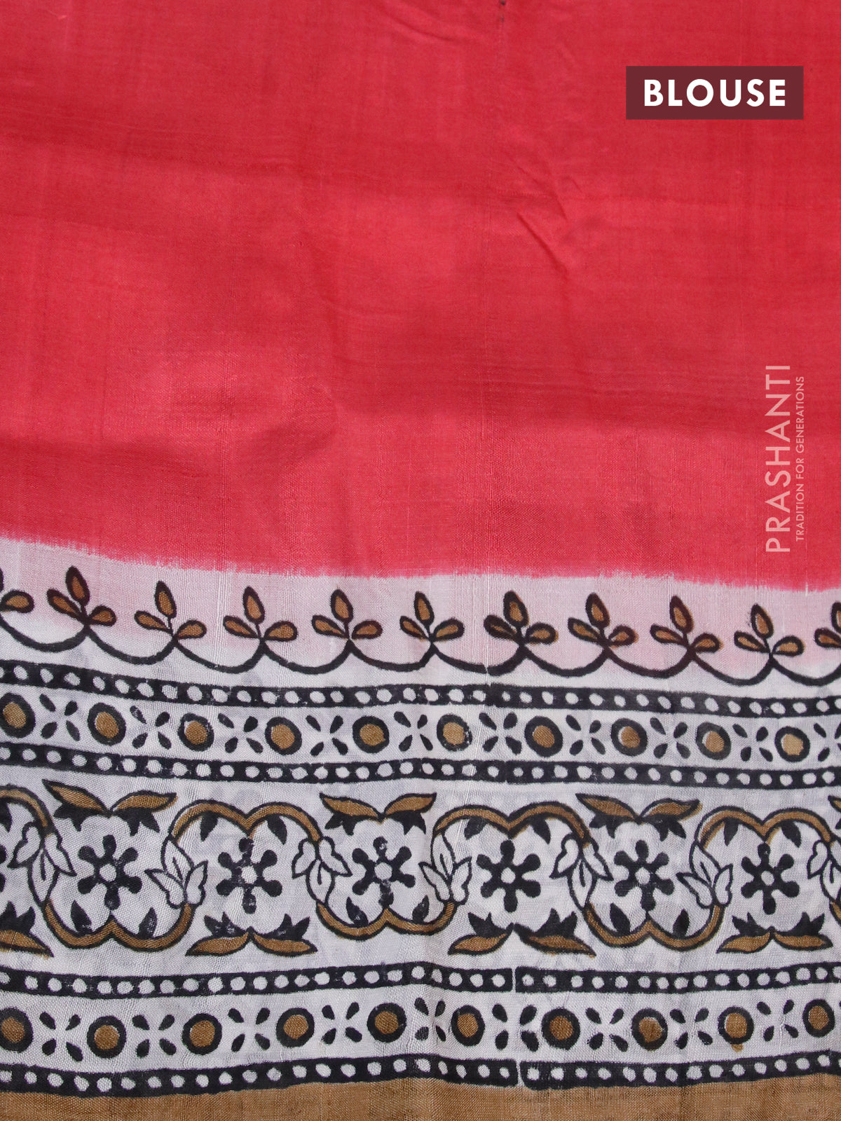 Bishnupuri silk saree red and dark sandal with butta prints and printed border