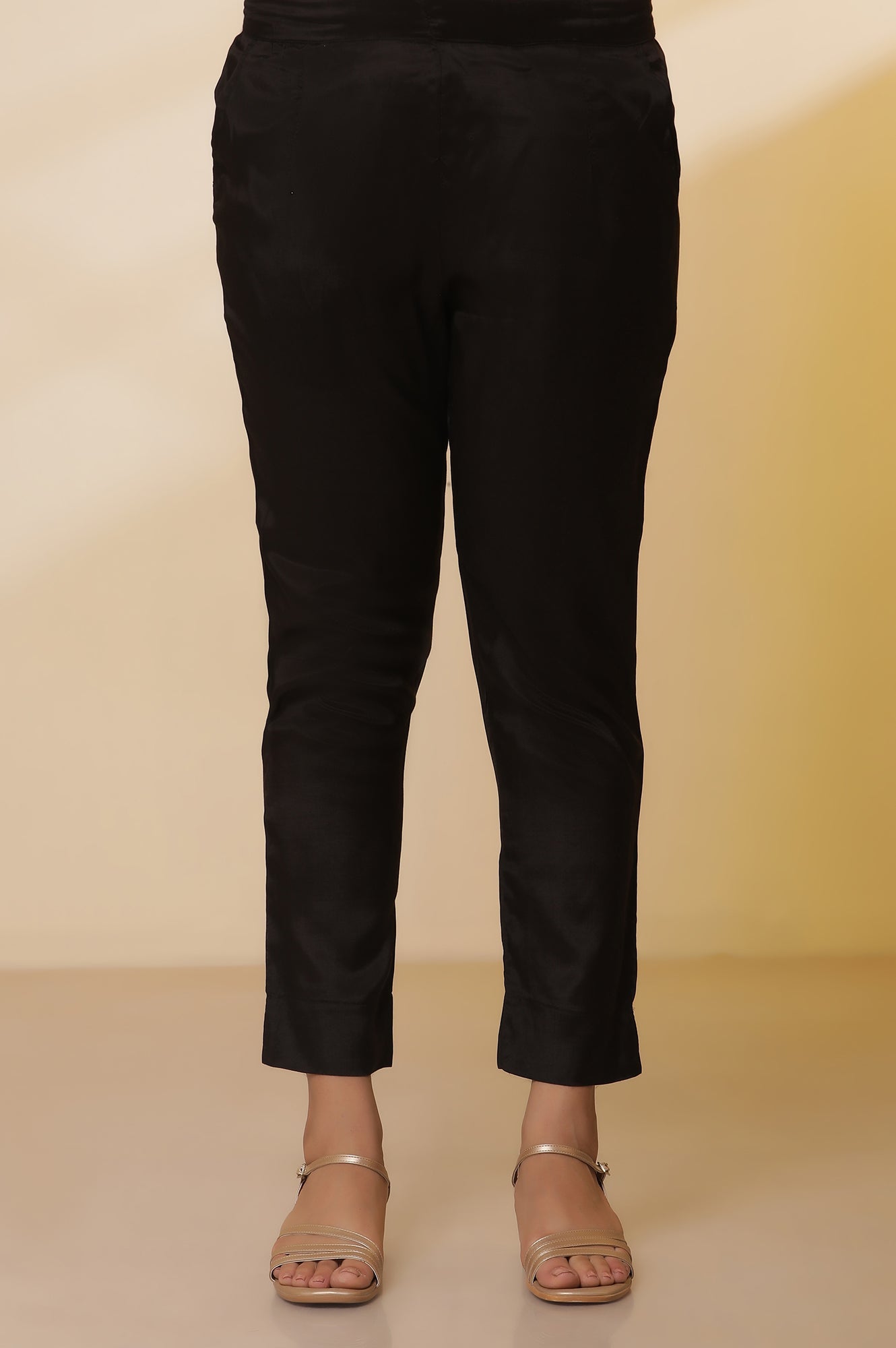 Get ready for the party look with this classy all black ethnic kurta set. The set has round neck straight shantung kurta which has embroidery on neck and yoke. It comes with black straight pants and duptta.