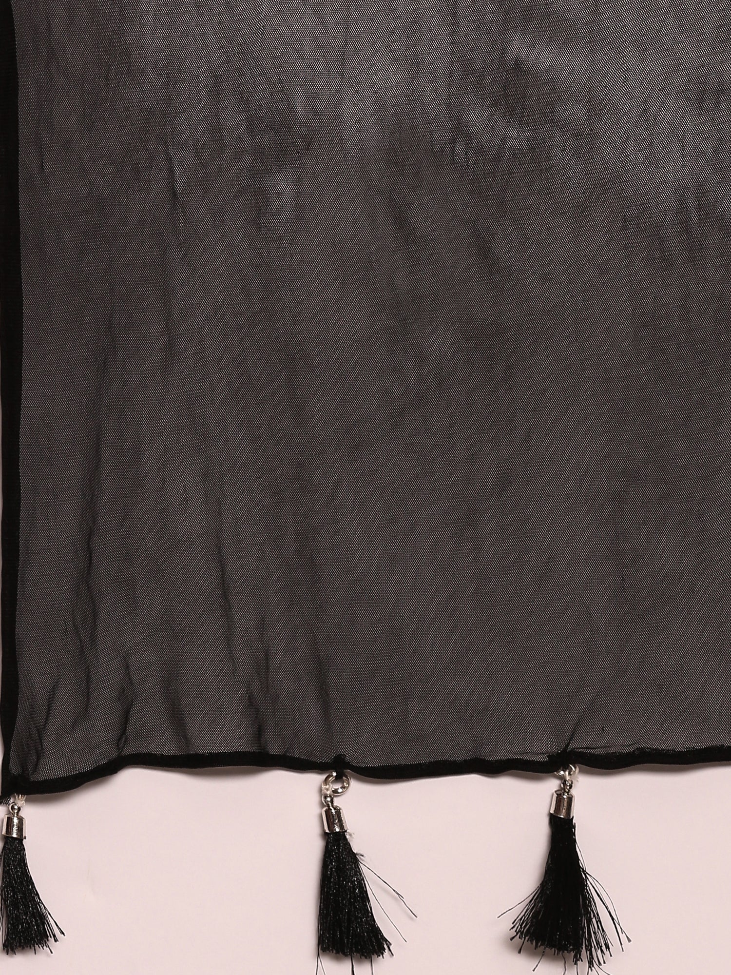 Elevate your ethnic wardrobe with this stunning black silk ensemble that seamlessly blends tradition with contemporary style. The intricately embroidered crop top features elaborate detailing that catches light beautifully, while the flowing palazzo pants offer comfort without compromising on elegance. Perfect for festive occasions, weddings, or upscale gatherings, this two-piece set delivers sophisticated sophistication. The luxurious silk fabric drapes gracefully against your skin, ensuring you feel as refined as you look. Make a lasting impression with this versatile piece that transforms any celebration into a fashion moment.